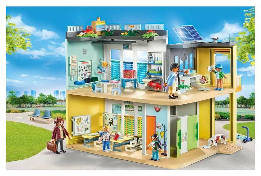 Akadálymentesített iskola lifttel, figurával és számos más kiegészítővel a vidám szerepjátékokhoz.