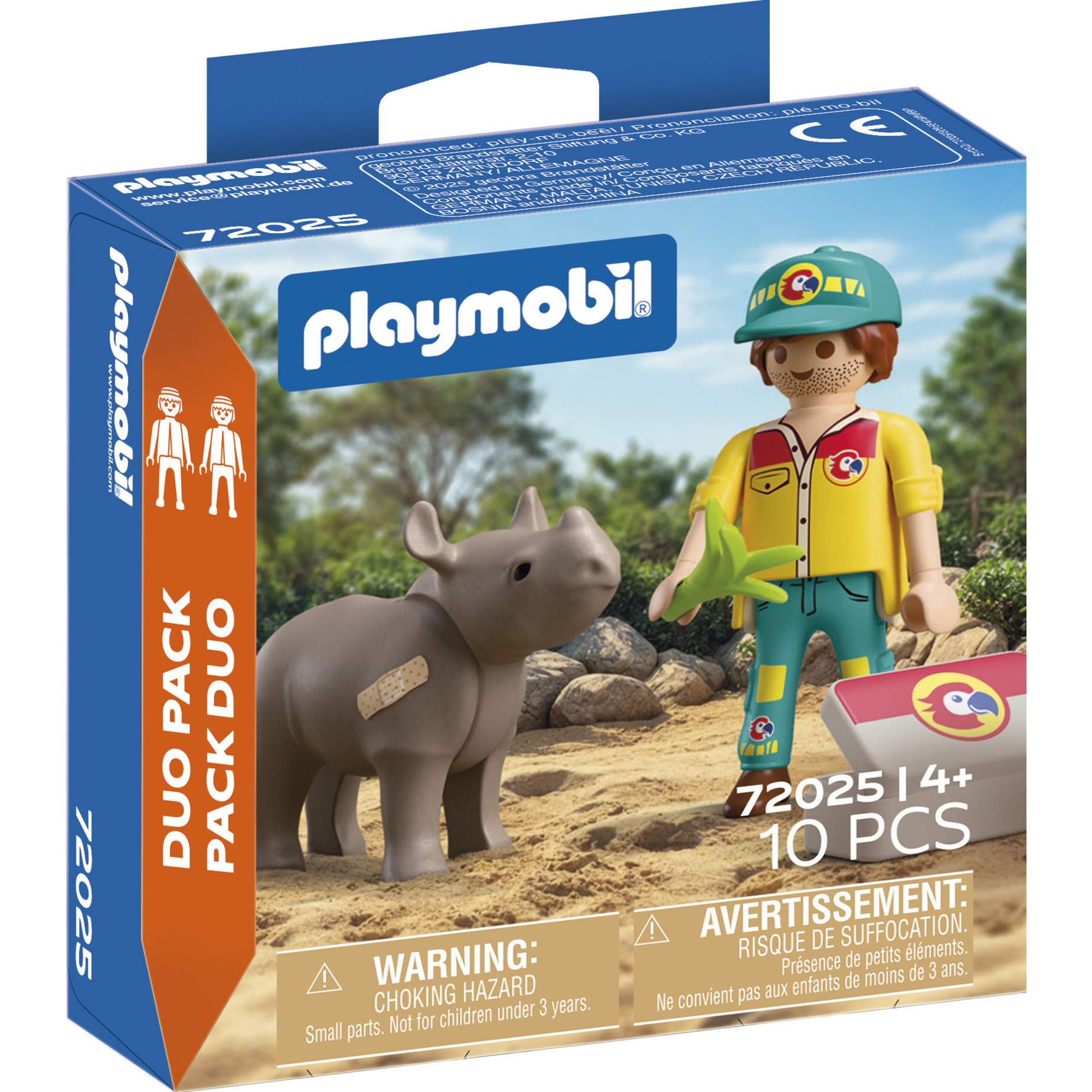 A PLAYMOBIL márka világszerte ismert részletgazdag, tartós figuráiról és témavilágairól. A DuoPack készletek kifejezetten arra lettek kitalálva, hogy kis helyen is komplett játékszituációt nyújtsanak – ideálisak ajándéknak, gyűjtésre vagy a meglévő PLAYMOBIL Wildlife készletek kiegészítésére. Ez a szett különösen jól illeszkedik állatkertes, szafaris, természetvédelmi témájú készletekhez, és remek kiindulópont beszélgetésekhez az állatvédelemről, a sérült állatok ellátásáról vagy akár a kihalófélben lévő fajok – például a rinocéroszok – védelméről.