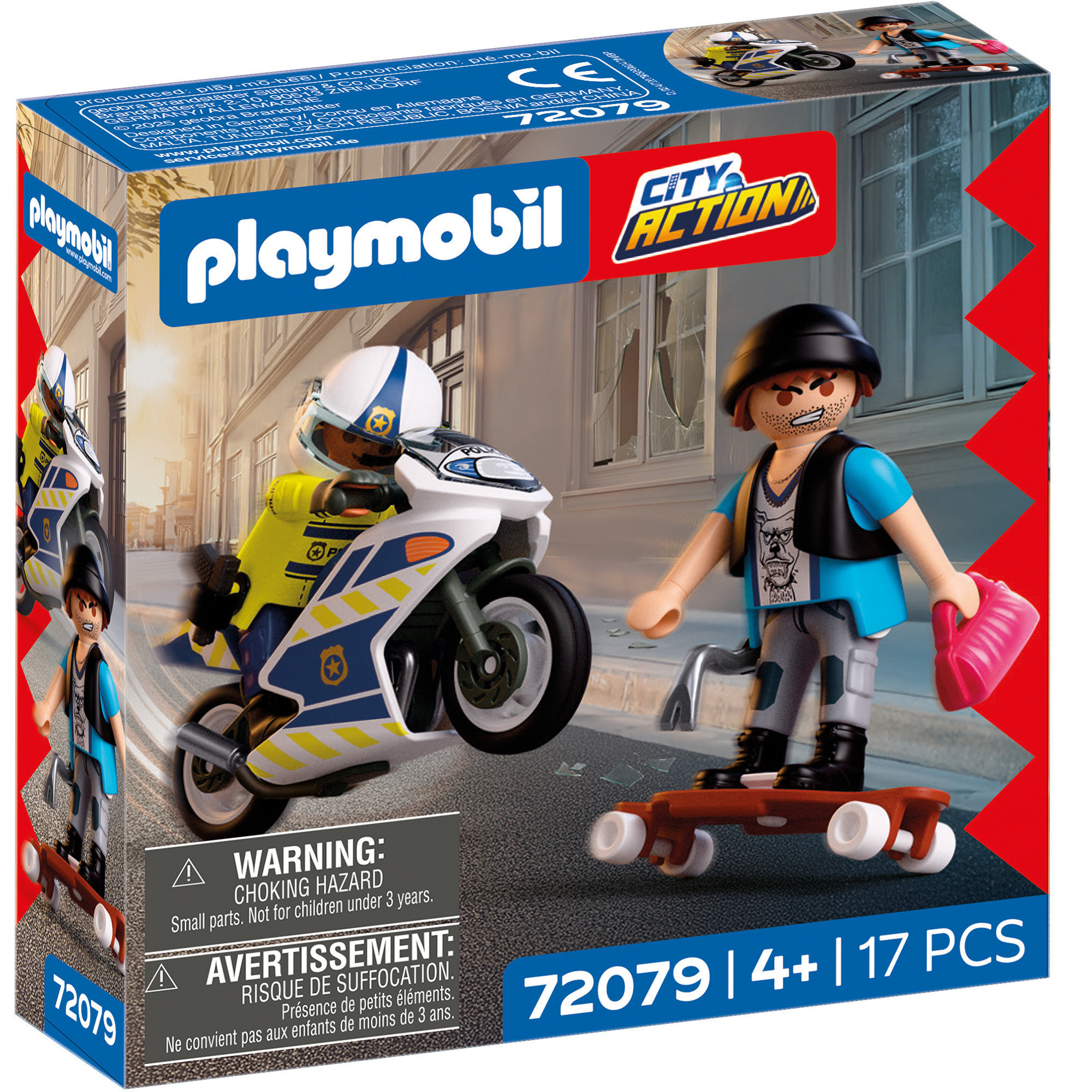 Száguldó motor, merész tolvaj, elszánt rendőr és egy nagyvárosi üldözés minden izgalmával – ez a szett azonnal beindítja a gyerekek fantáziáját. A részletgazdag kiegészítőknek és a mozgatható figuráknak köszönhetően a gyerekek újra és újra eljátszhatják saját akciódús történeteiket, miközben fejlődik képzelőerejük, kézügyességük és szerepjáték készségük.