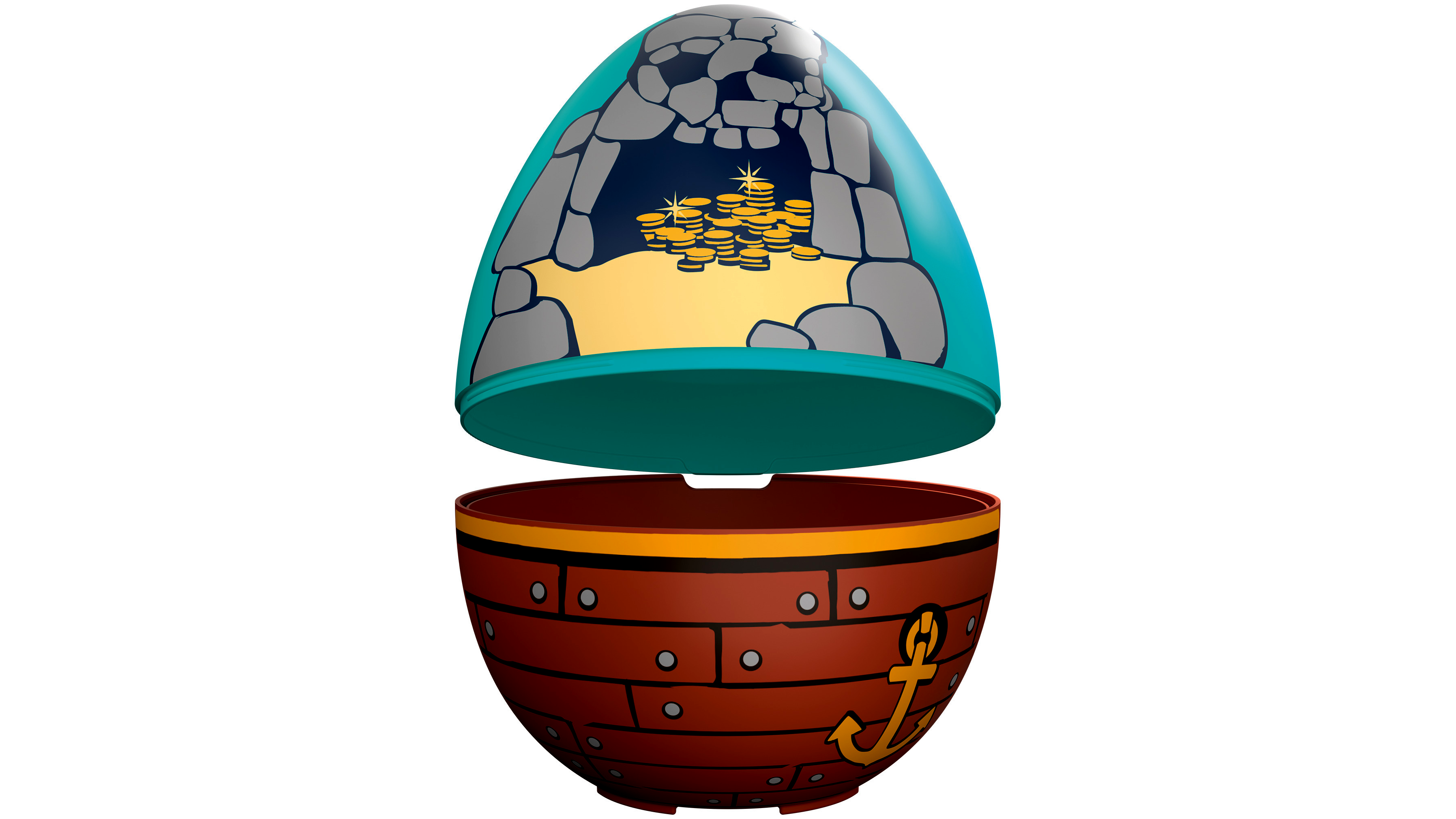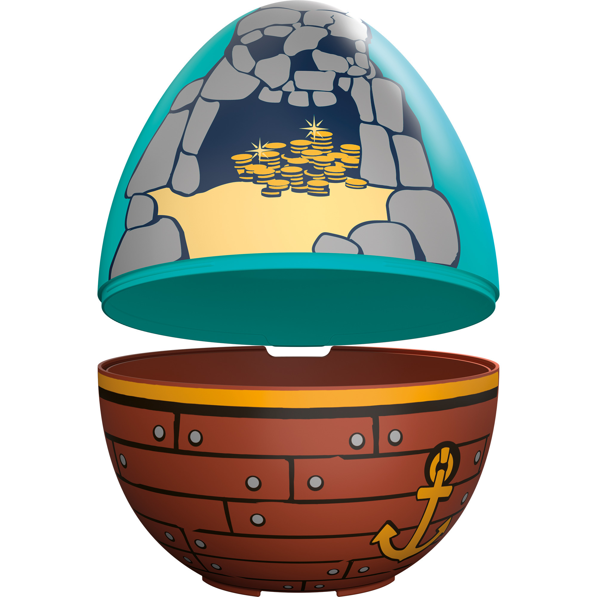 Ez a különleges játéktojás egy komplett kalóz-játszóvilágot rejt, amely pillanatok alatt terepasztallá, majd ugyanilyen gyorsan praktikus tárolóvá alakul. Ideális választás a kis kincsvadászoknak, akik imádják a fantáziadús szerepjátékokat, a kalandokat és a látványos csatajeleneteket.