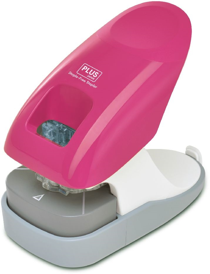 Soha többé ne tapasztalja meg a kifogyott kapcsok bosszúságát! A rózsaszín PLUS kapocsmentes tűző- és lyukasztógép egy innovatív megoldás, amely megkönnyíti mind az irodai, mind az otthoni munkavégzést.