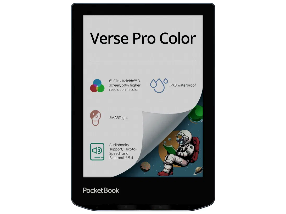 A PocketBook Verse Pro Color E-Book Olvasó egy prémium kategóriás eszköz, amely tökéletes választás az olvasás szerelmeseinek. Ez az e-könyv olvasó 6 hüvelykes, háttérvilágítású érintős E Ink kijelzővel rendelkezik, amely Full HD 1448 × 1072 felbontást nyújt, így a szövegek és képek élesek és tiszták. A színmegjelenítést is támogatja, így a magazinok és színes illusztrációk élethűen jelennek meg.