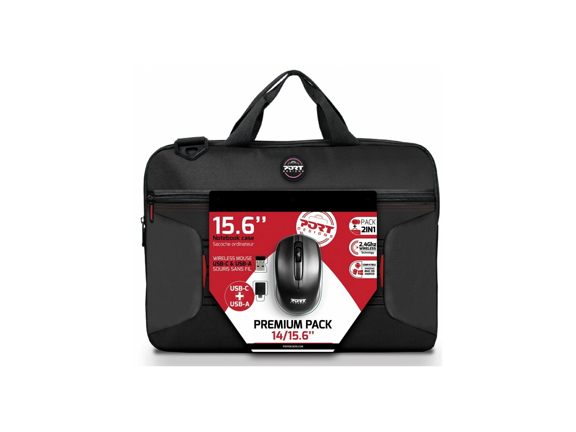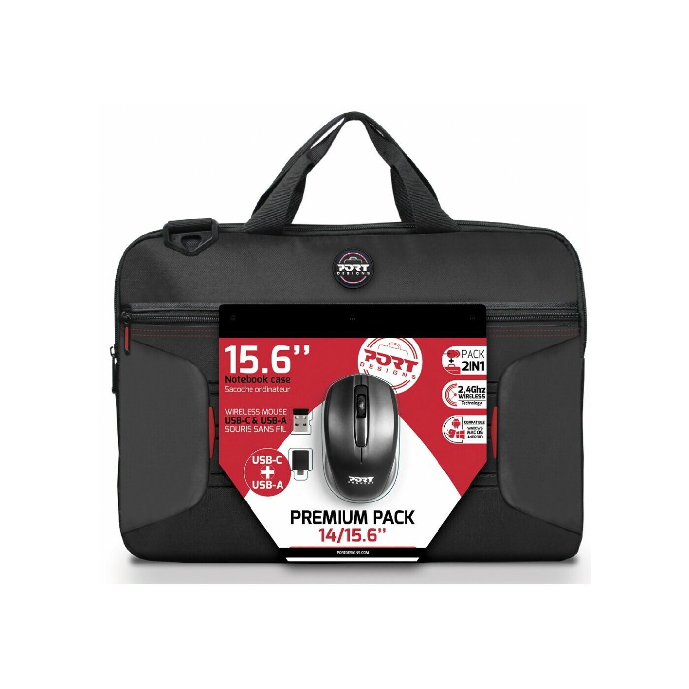 A Premium Pack egy laptop táskából és egy vezeték nélküli egérből áll. A táska kompakt és könnyű, kifejezetten a laptop szállítására szolgál.