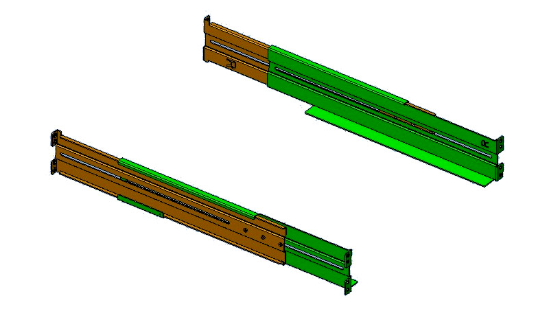 Ez a rack sínkészlet, 738 mm-re nyújtható. Ez lehetővé teszi, hogy a rack sínkészletet úgy szerelhesse be a rack szekrénybe, hogy a támasztó keretek már rögzített állapotban vannak. Ez a készlet alkalmas 1200 mm-es mélységű szerver szekrényhez is, mely középső támasztókerettel rendelkezik.