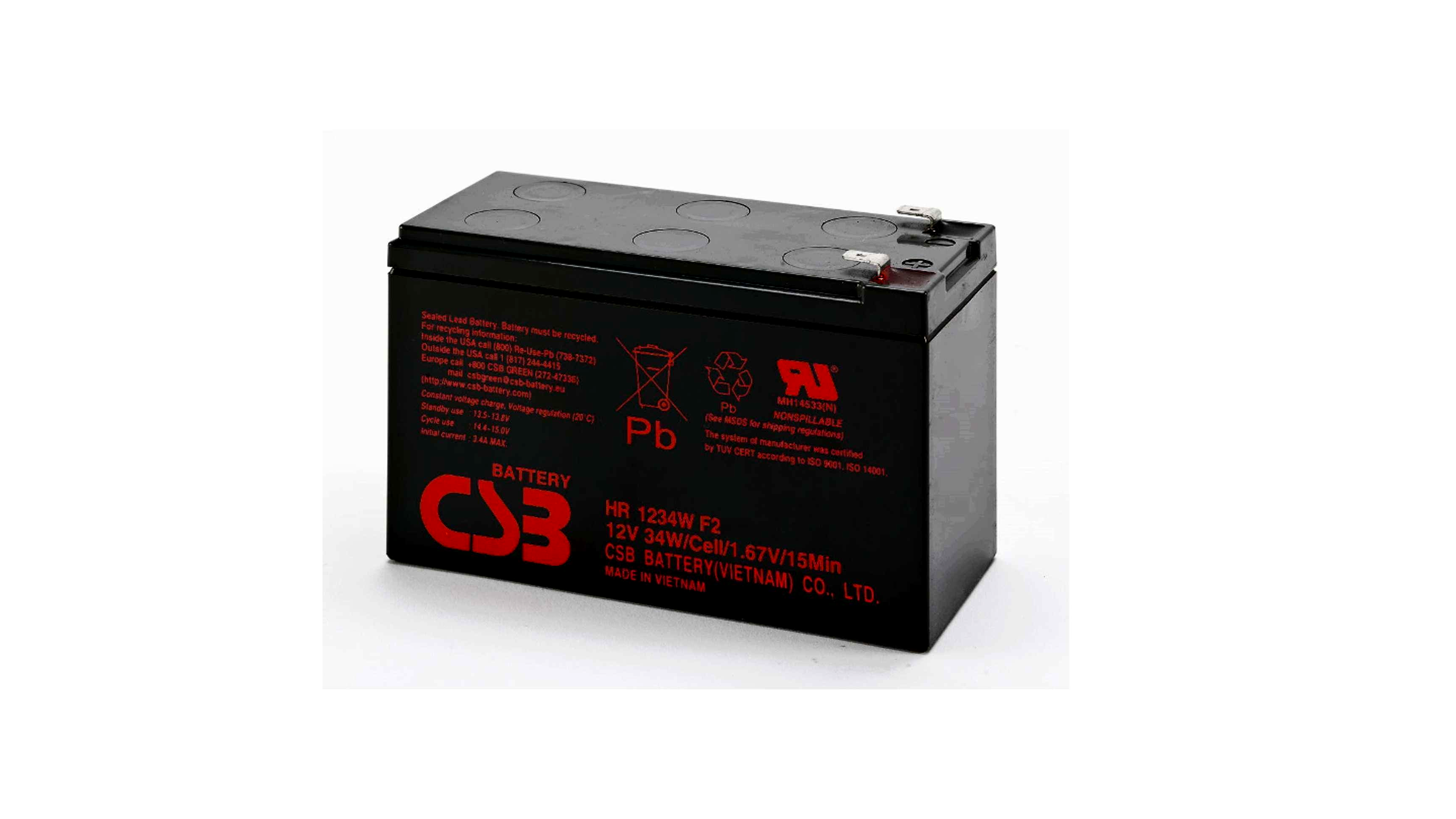 A PowerWalker CSB HR1234W egy 12 voltos / 9 Ah-s, nagy kisütési sebességű akkumulátor online szünetmentes tápegységekhez. Az akkumulátor kompatibilis a PowerWalker VFI 6000 PRT HID, VFD 600 APFC és VFD 600 APFC FR online UPS-sel.