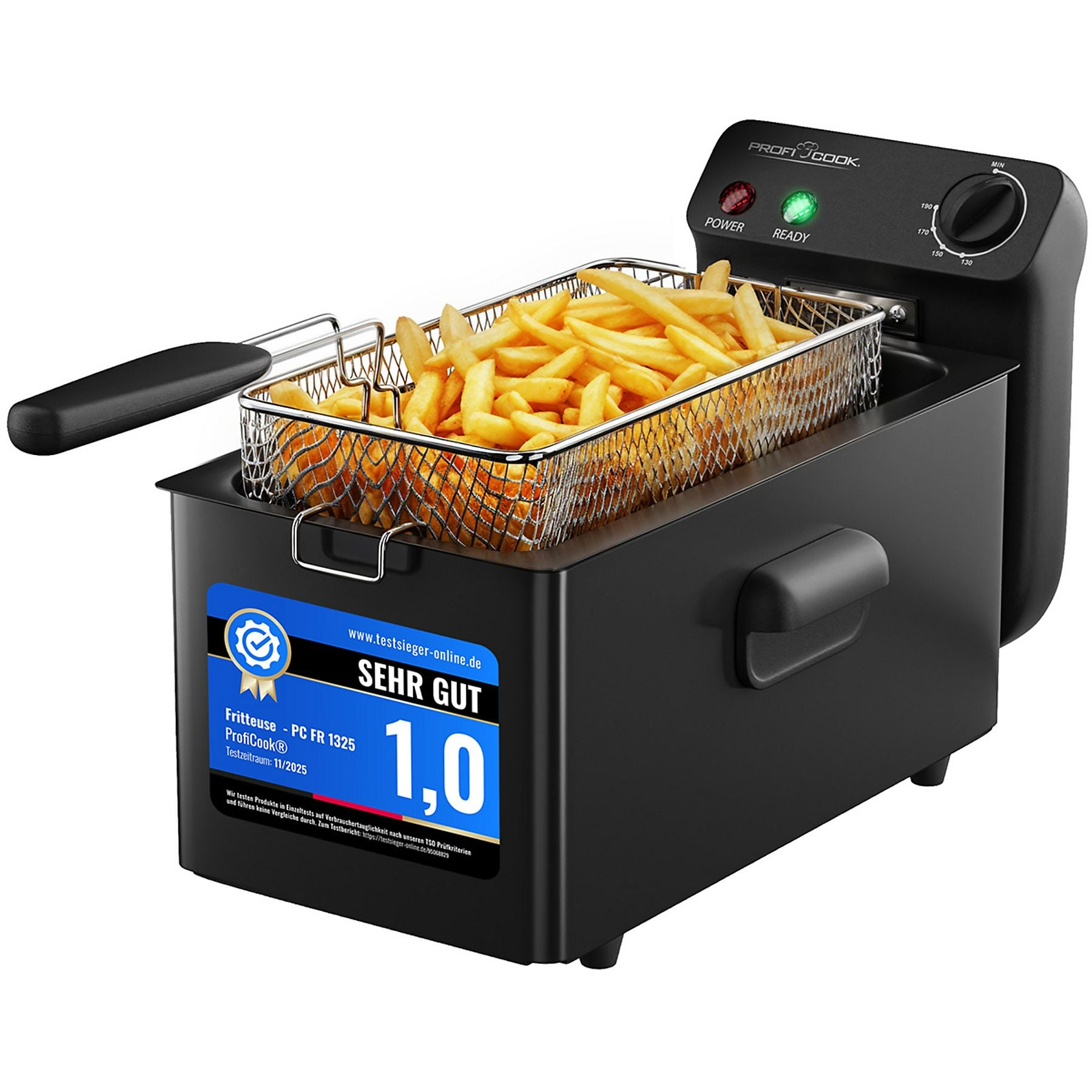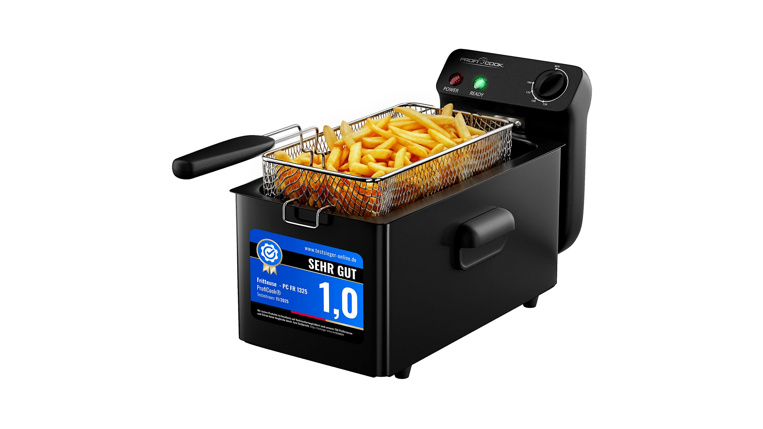 • Profi fém fritőzkosár: stabil, kényelmes fogantyúval a biztonságos kiemeléshez.