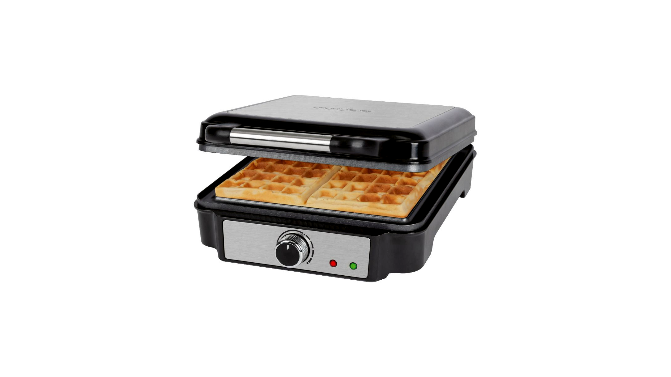 - A gofrisütő forgatható vezérlővel rendelkezik a fokozatmentesen állítható barnulási fokhoz - a beépített sütési lámpának köszönhetően anélkül, hogy kinyitná a fedőt, láthatja, mikor készen van a gofri
