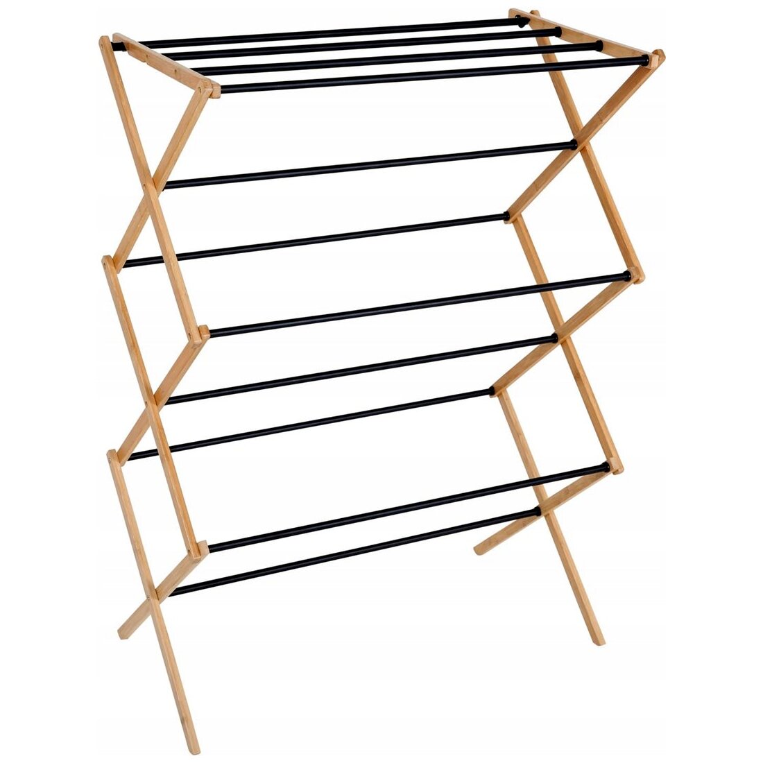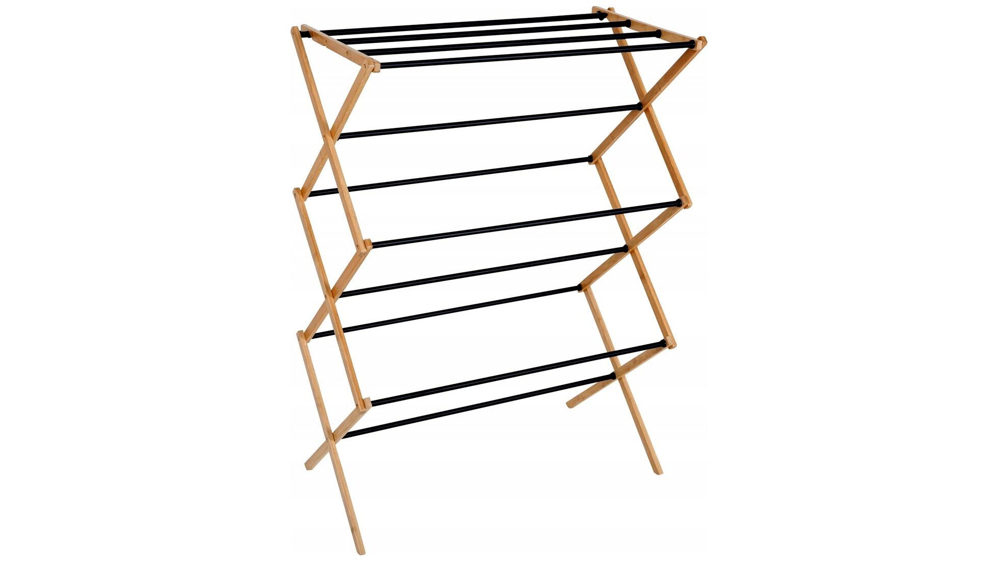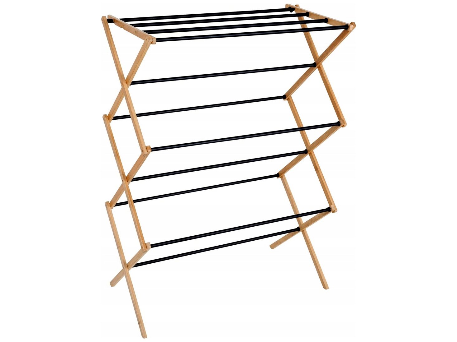 Ez a stabil felépítésű, fa és acél kombinációjából készült ruhaszárító ideális választás mindennapi használatra, ha lakásban vagy erkélyen szeretnéd a ruhákat hatékonyan, mégis helytakarékosan szárítani. A természetes fa felület és a fekete acél elemek modern, letisztult megjelenést adnak, így nem zavaró látványelem a lakótérben sem.
