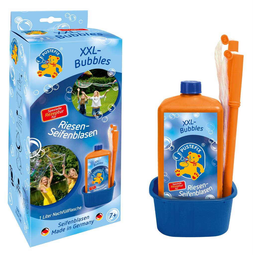 • Stabil, tartós buborékok: A Pustefix buborékoldatok receptúrája úgy lett kialakítva, hogy a buborékok különösen erősek és látványosak legyenek, ideálisak óriásbuborék formázására.