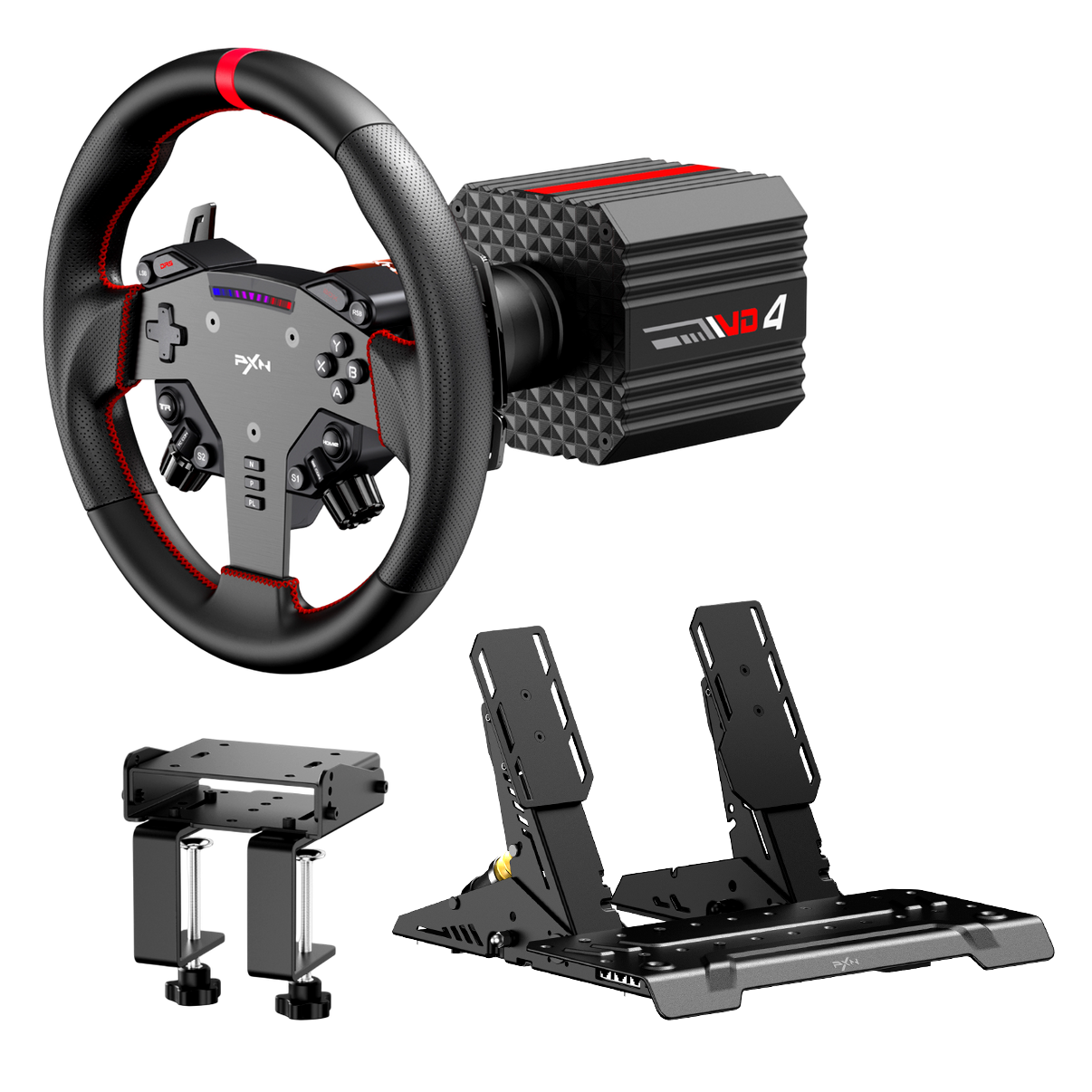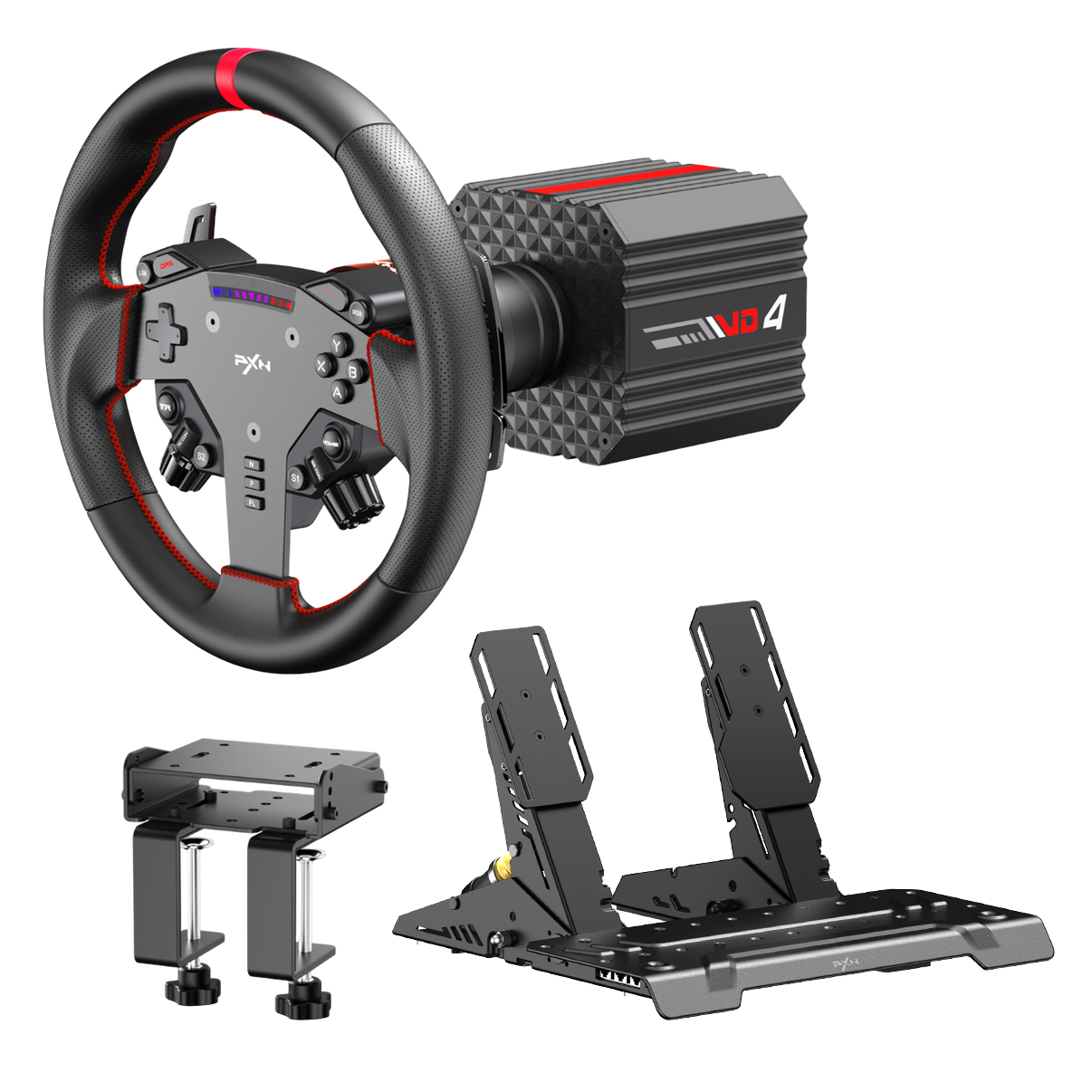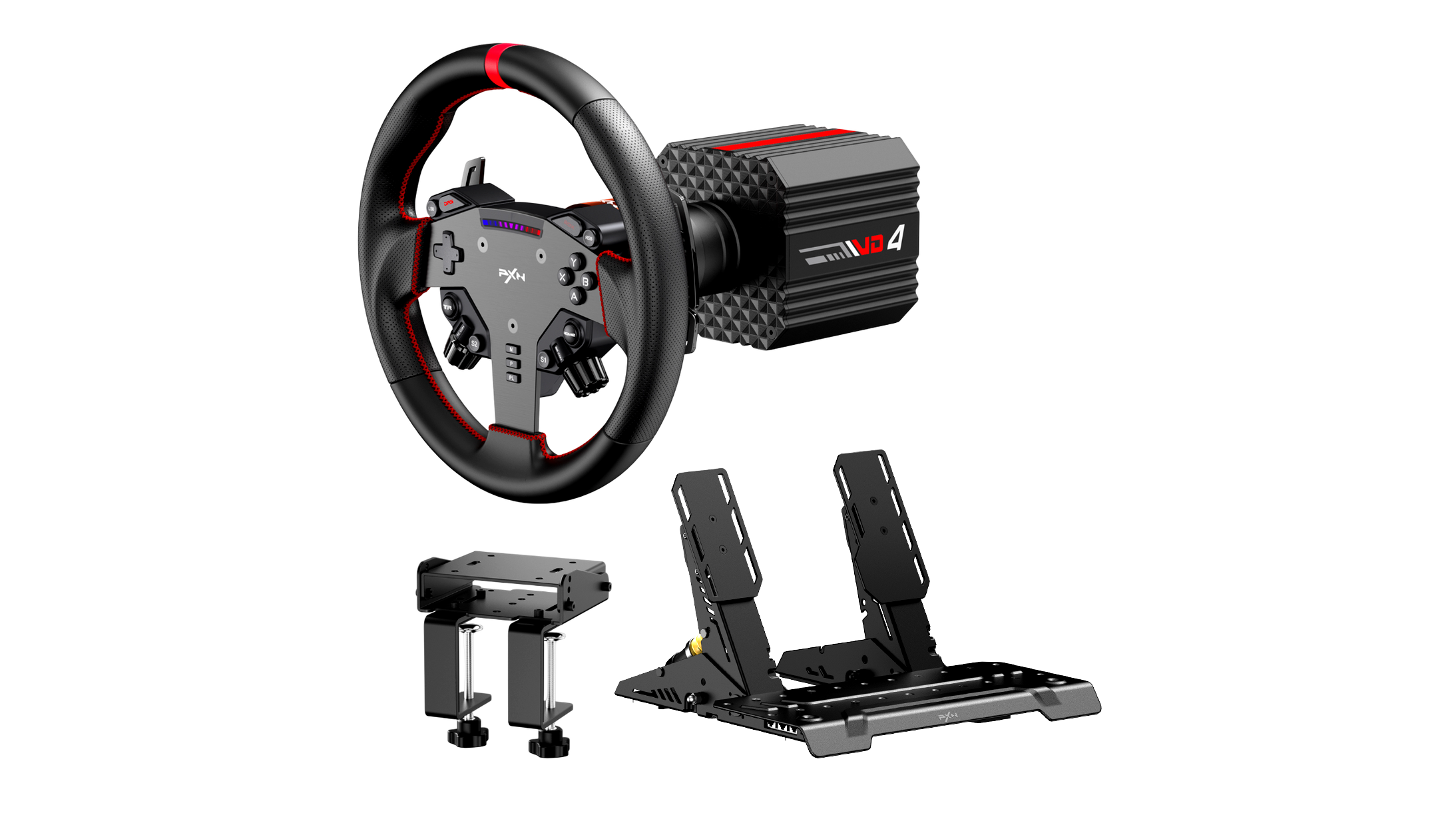 - Rögzítés és szoftver: Z8 asztalibilincs a bázis biztonságos rögzítéséhez; nagy merevségű felfogatás íróasztalra vagy keretre; gyors ki- és beszerelés lehetősége; PXN SimRacing szoftver támogatás; részletes FFB beállítási opciók; több játékhoz külön-külön profilok; gombkiosztás testreszabhatóság; profilok közti gyors váltás; intuitív kezelőfelület.