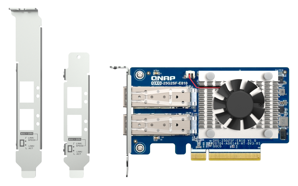 A kétportos QXG-25G2SF-E810 25 GbE hálózati bővítőkártya Intel® Ethernet Controller E810-XXVAM2-vel támogatja a PCIe Gen 4-et (visszafele kompatibilis a Gen 3-mal), és akár 25 Gbps átviteli sebességet biztosít (10/25 Gbps támogatás).