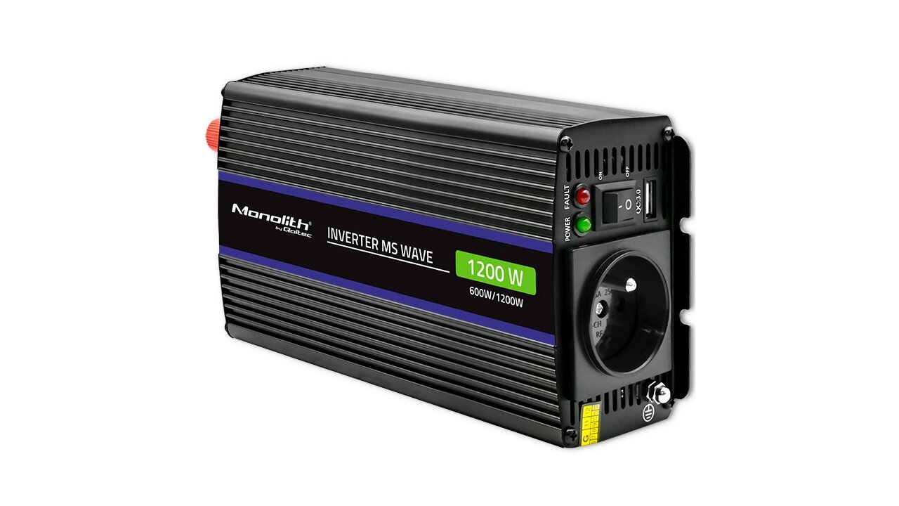A Qoltec MS wave Monolith feszültségátalakítója olyan eszköz, amely a 12 V-os egyenfeszültséget 230 V-os váltakozó áramú feszültségre változtatja. Ideális, ha nincs közvetlen hozzáférés az elektromos hálózathoz. Könnyen táplálja az olyan berendezéseket, mint a laptop, számítógép, játékkonzol, vízforraló vagy hajszárító, vagy töltse fel okostelefonját. A termék beépített hálózati aljzatokkal rendelkezik, amelyek kompatibilisek az európai csatlakozókkal és egy USB porttal.