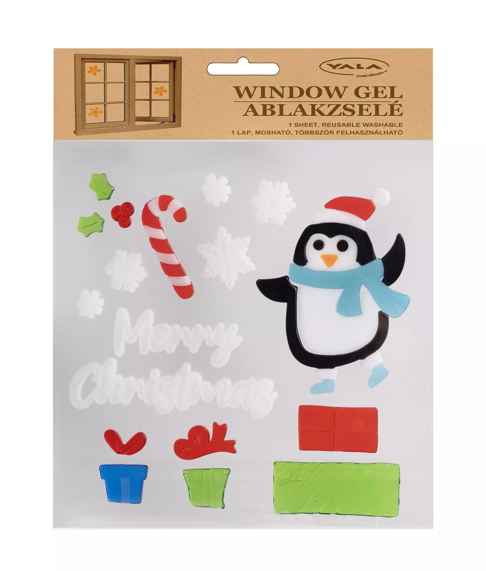 Ünnepi Hangulatot Teremtő Ablakzselé - Pingvin és Ajándékok Mintákkal