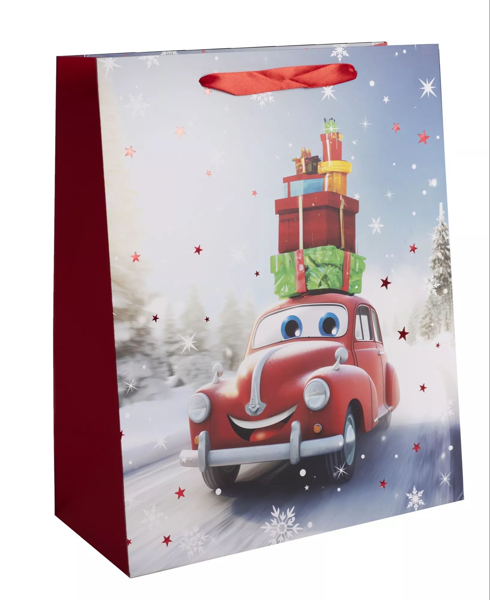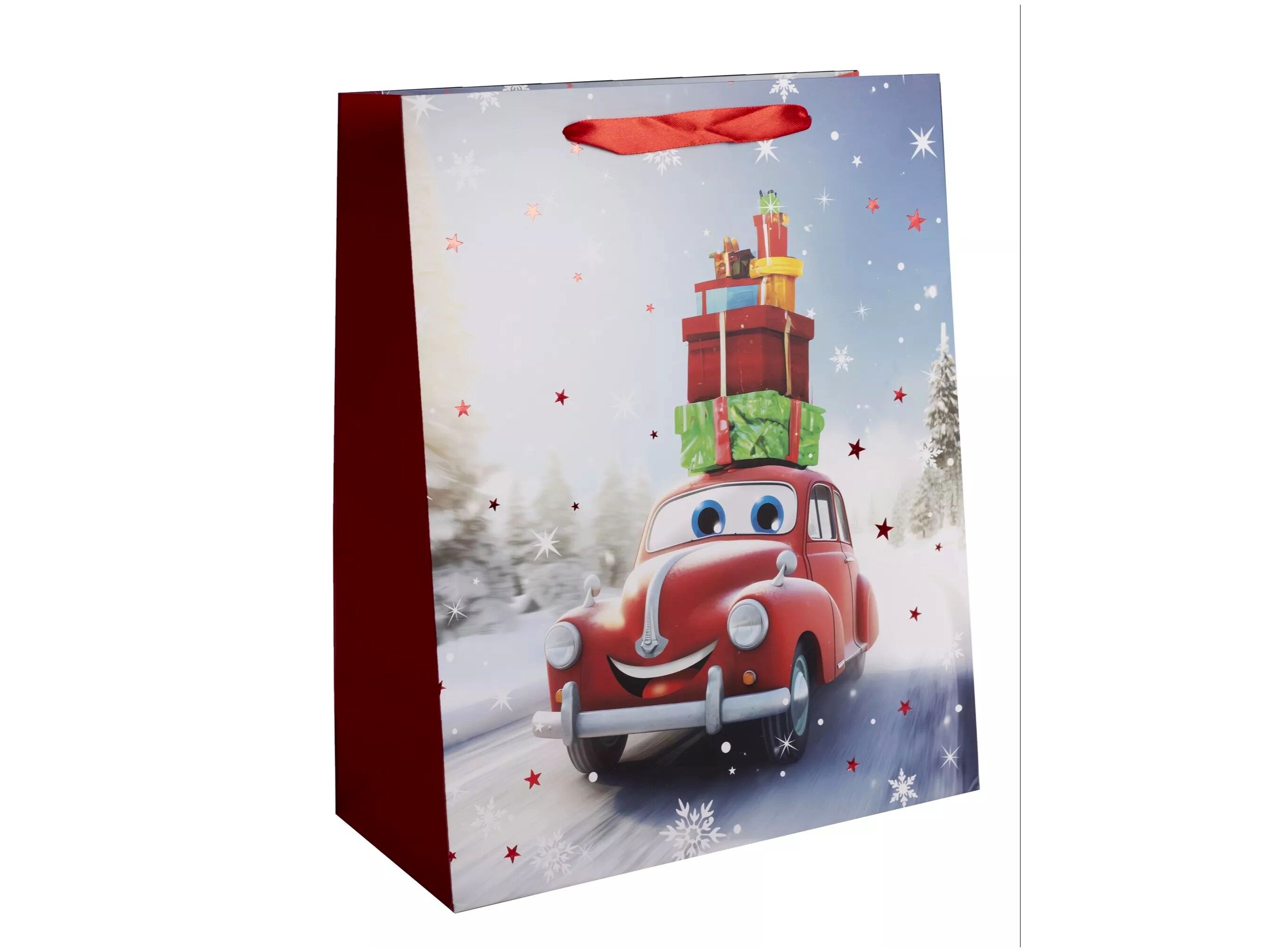 Varázsolj örömteli meglepetést szeretteidnek ezzel az elegáns ajándéktasakkal! A piros autó mintájú ajándéktasak tökéletes választás minden alkalomra, legyen szó születésnapról, évfordulóról, karácsonyról vagy bármilyen ünnepi eseményről. A tasak minden részlete a kifinomultságot sugallja, így biztosan elnyeri a megajándékozott tetszését.