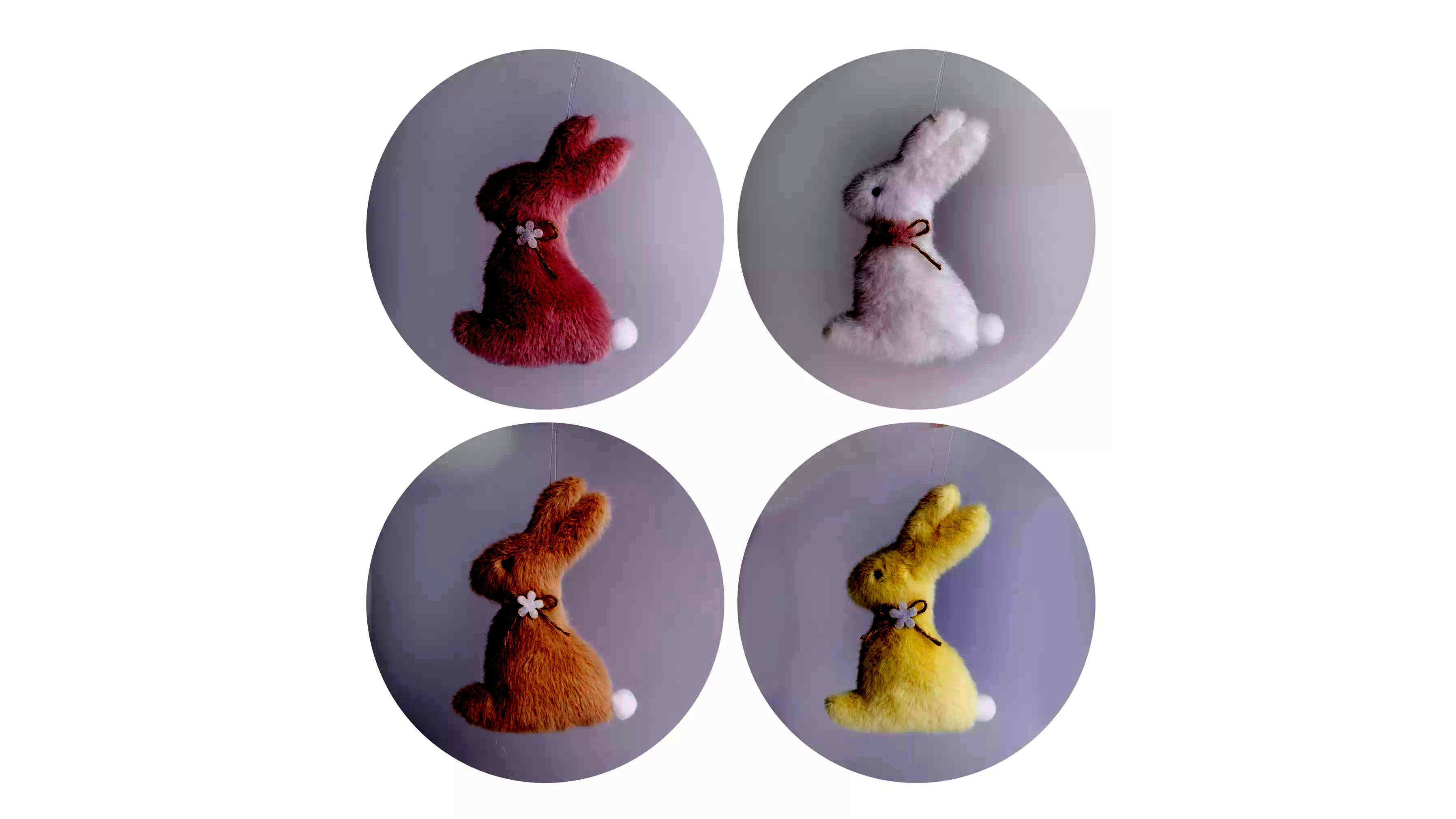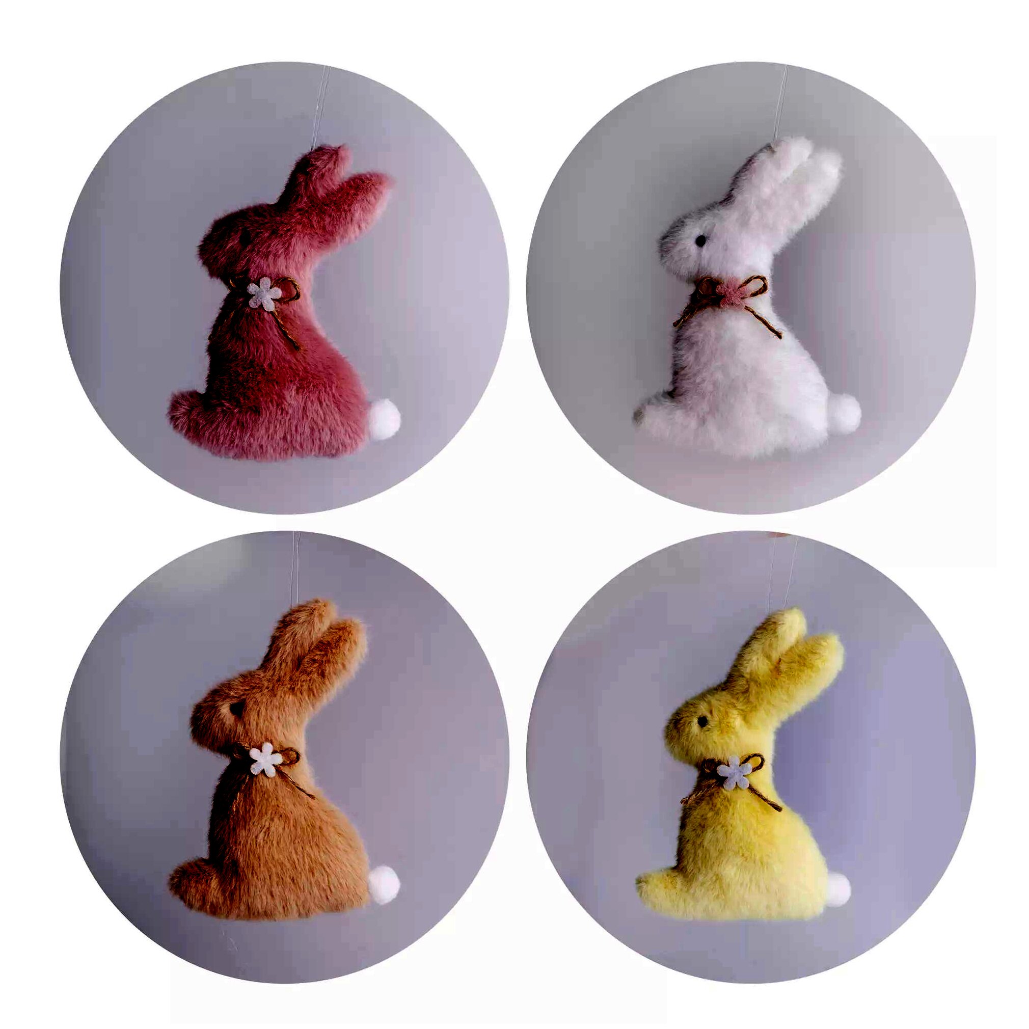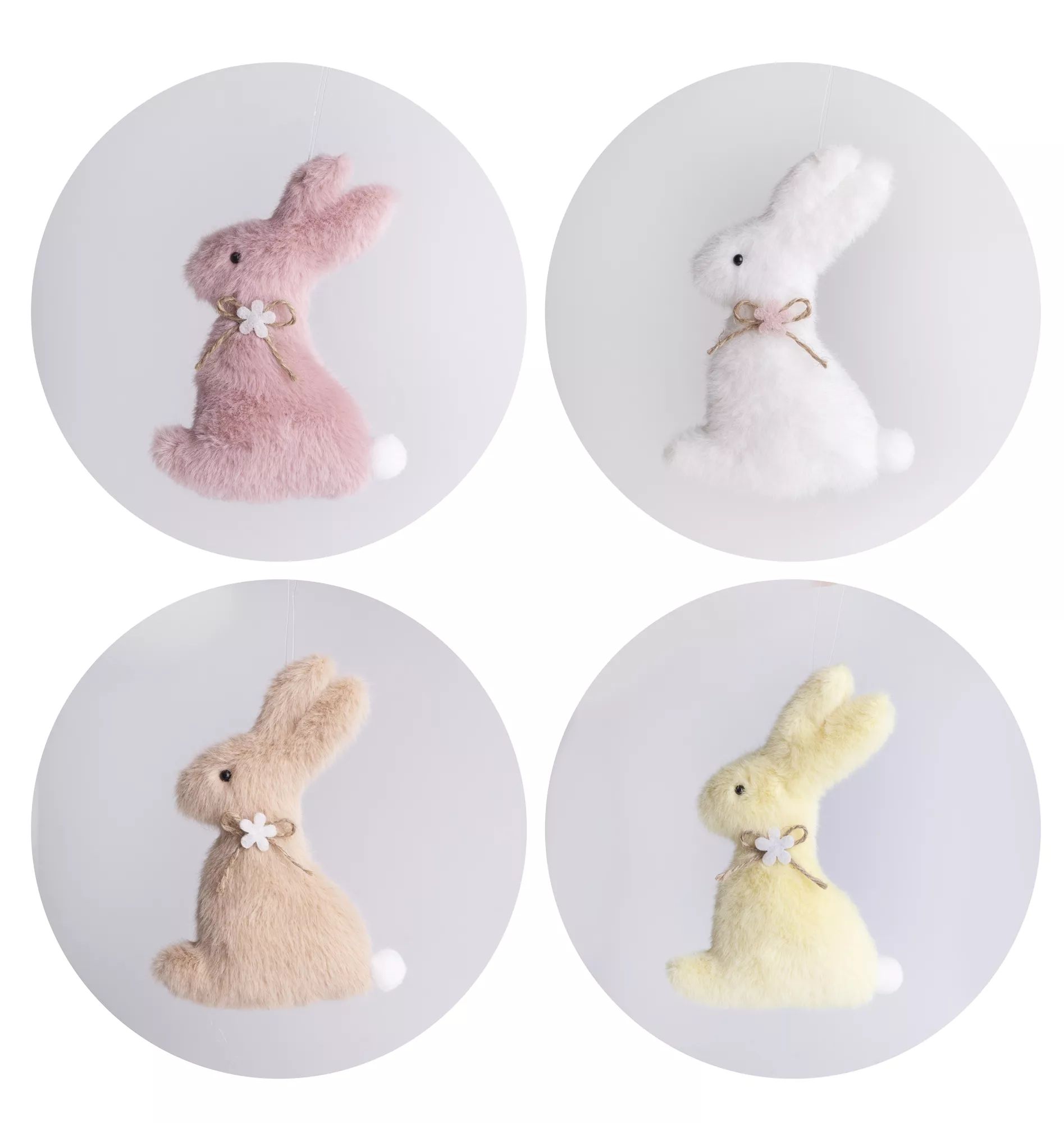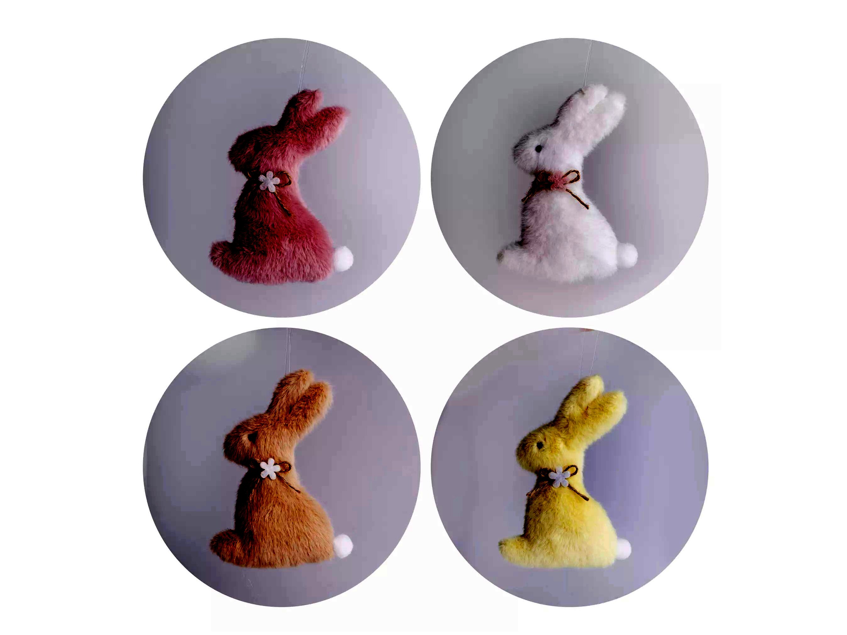 Ezzel a cuki nyuszi dísszel feldobható a nappali, a gyerekszoba vagy a lakás bármelyik helyisége. Sőt, akár a húsvéti kosárkában is nagyon jól mutat, vagy saját készítésű húsvéti dísz kiegészítő eleme is lehet. A praktikus akasztónak köszönhetően könnyen felfüggeszthető. A nyuszi nyakát virágos masni díszíti.