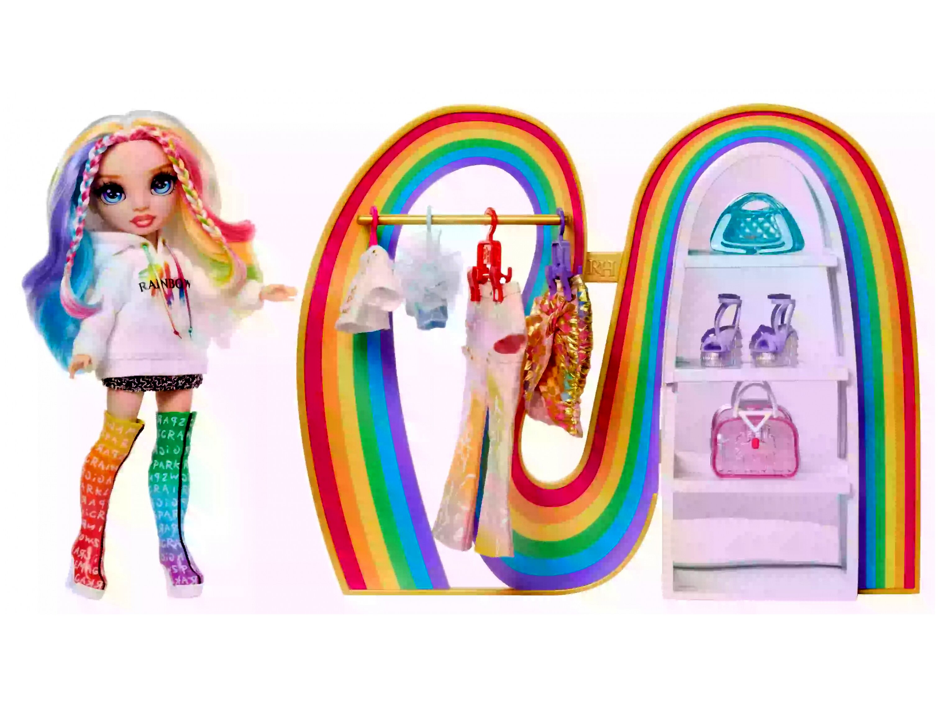A játékszett egy elegáns, szivárvány színű gardróbot tartalmaz, amely tele van különböző divatos ruhákkal és kiegészítőkkel. A gyerekek számtalan összeállítást hozhatnak létre, és különféle stílusokat próbálhatnak ki, ami nemcsak szórakoztató, de fejleszti a kreativitásukat és az önkifejezésüket is. A termék részletgazdag dizájnja és a minőségi anyagok használata garantálják a hosszú élettartamot és a hosszú távú játékélményt.