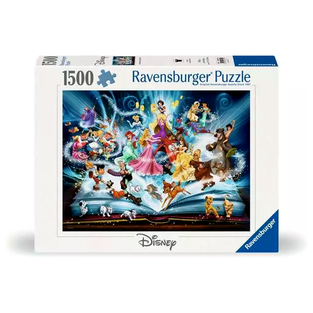 Ismerd meg a Ravensburger által megalkotott lenyűgöző, 1500 darabos Disney mesekönyvet ábrázoló puzzle-t! Ez a különleges darab megidézi kedvenc Disney karaktereidet, és biztosítja, hogy minden korosztály számára élvezetes kihívást és szórakozást nyújtson.