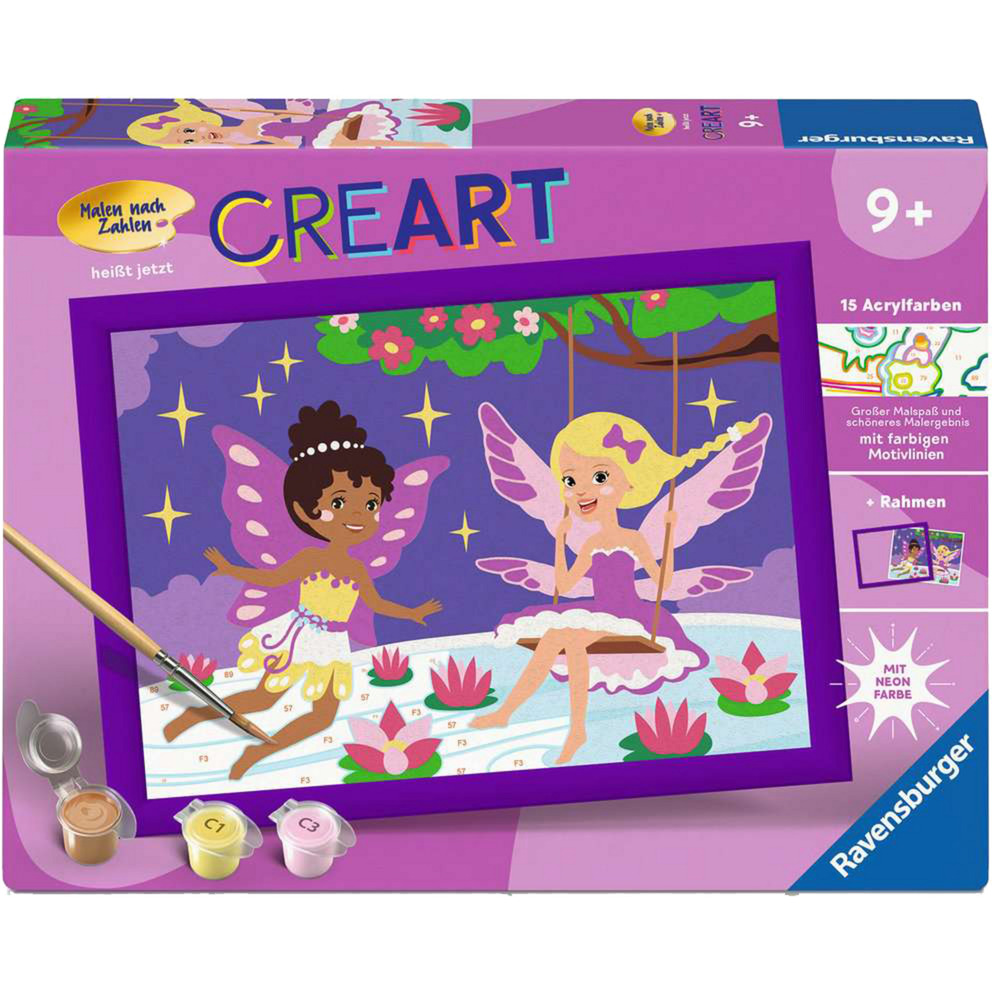 A CreArt „Tündérbarátok” festőkészlet varázslatos, mégis könnyen elkészíthető képet kínál a kisebb és nagyobb gyerekeknek egyaránt. A számok szerinti festésnek köszönhetően a gyermek magabiztosan, sikerélménnyel élheti át az alkotás örömét, akkor is, ha még csak most ismerkedik a festéssel.