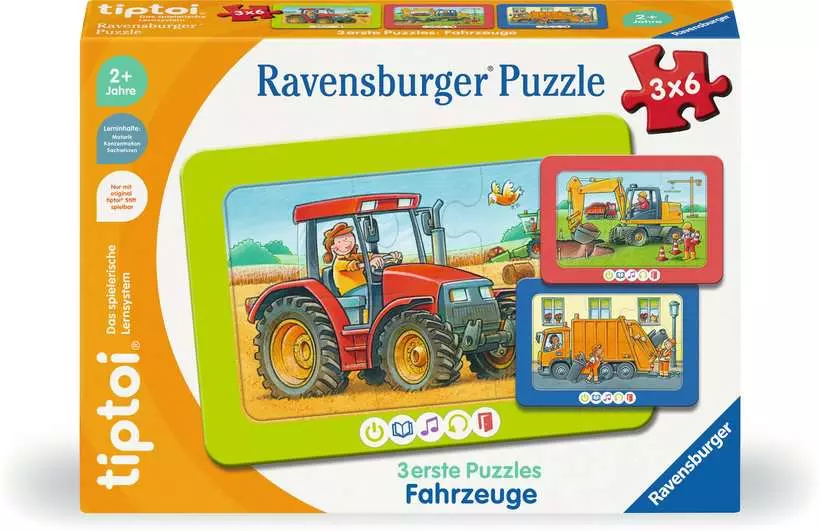 Fedezd fel az első kirakós élményeket a legkisebbek számára ezzel a varázslatos Ravensburger puzzle készlettel! A tiptoi 3x6 darabos járművek témájú puzzle különösen alkalmas a gyermekek finommotorikus készségeinek fejlesztésére és koncentrációjuk növelésére. A színesen és szeretettel illusztrált részeket könnyedén össze lehet rakni, már 2 éves kortól.