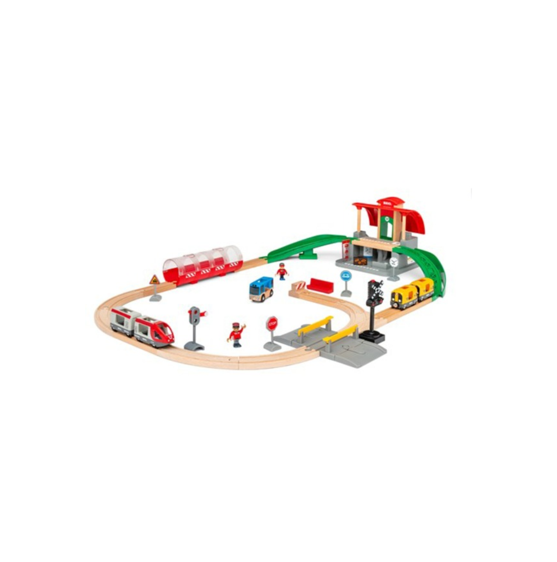 Engedd, hogy gyermeked fantáziája szárnyaljon ezzel a klasszikus játékvonat-készlettel, amely vonatokkal, járművekkel, állomással és számos kiegészítővel hívja játékra a kicsiket. Az utasok könnyedén átszállhatnak a főpályaudvaron keresztül a metróra vagy a buszra, így változatos játékélményt biztosítva.