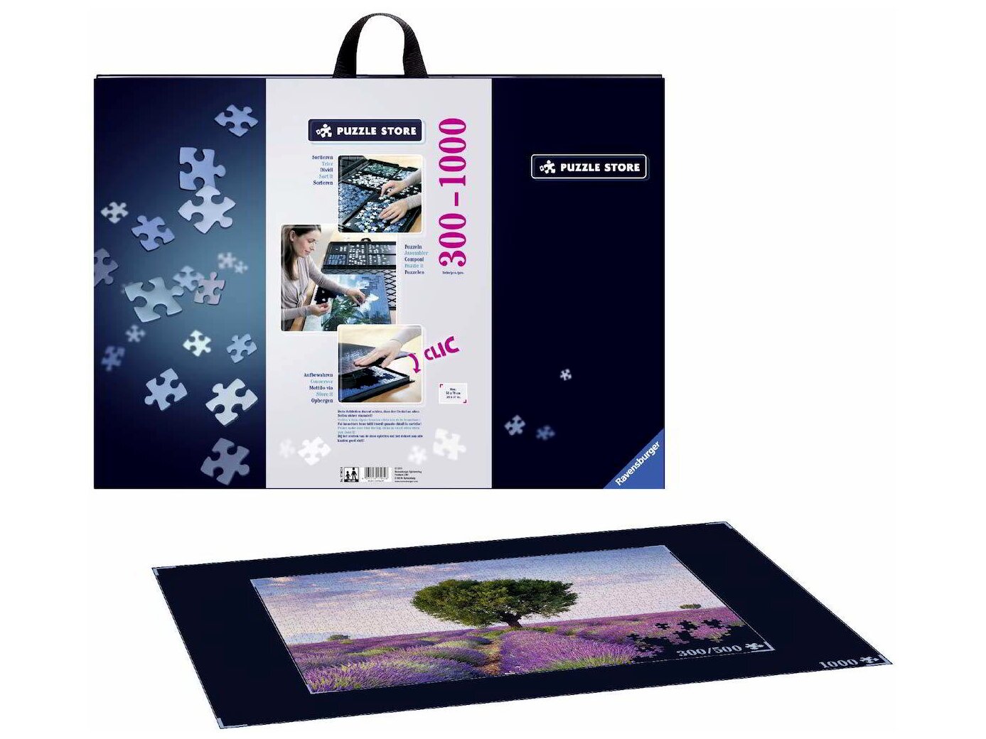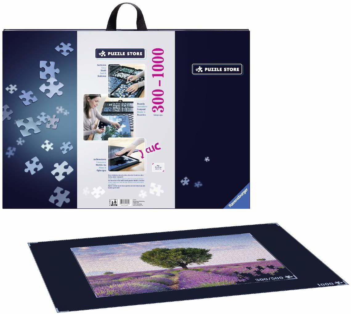Az alkatrészek rendezéséhez egyszerűen használja a szilárd műanyag mappa belsejét, amelyet különféle méretű részekre osztanak. A rejtvényt egy erős kartonból készült puzzle-betétre helyezheti, amelyet külön-külön is szállíthat. Hagyományos segédeszközként megtalálja a Ravensburger rejtvények körvonalait, amelyekre 500 és 1000 rész van előre nyomtatva.