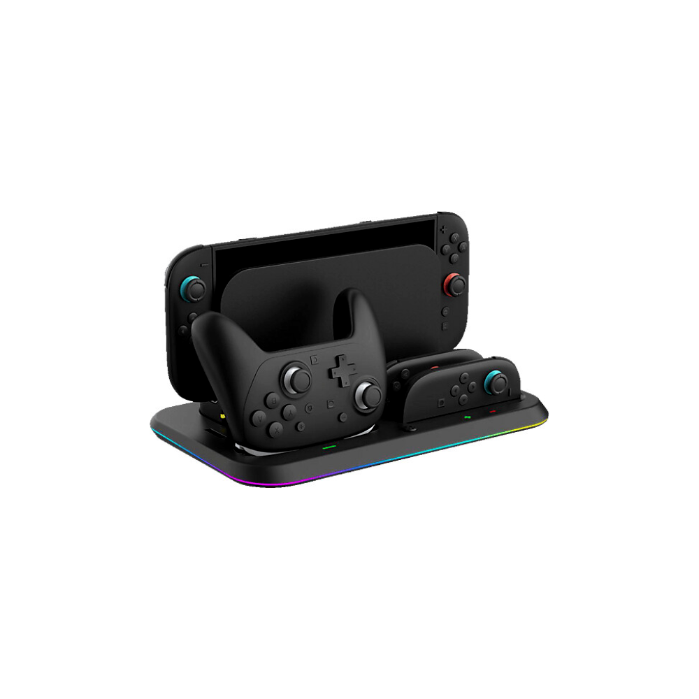 A ready2gaming Nintendo Switch 2 töltőállomás tökéletes választás, ha egyszerre szeretnéd kényelmesen és gyorsan feltölteni a konzolodat és a kontrolleredet. Az elegáns, fekete kialakítás harmonikusan illeszkedik bármelyik játékállomáshoz, miközben a funkcionalitást is magas szinten garantálja.