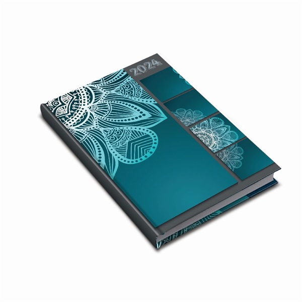 Színes papírborító soft-touch fóliával, kétnapos beosztás + jegyzetlap.