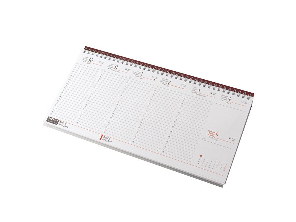 Ikerspirállal összefűzött, fehér lapos, fekvő naptár