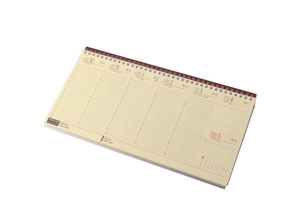 Ikerspirállal összefűzött, Krém (Chamois) lapos, fekvő asztali naptár