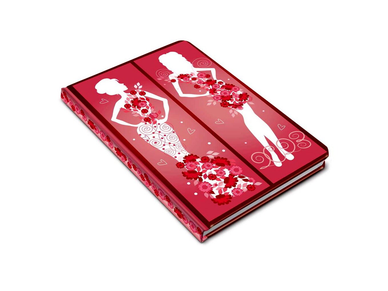 3D-lakkal felületnemesített, kemény táblával, lekerekített sarkokkal, és színes gumiszalaggal biztosított zsebnaptár.
