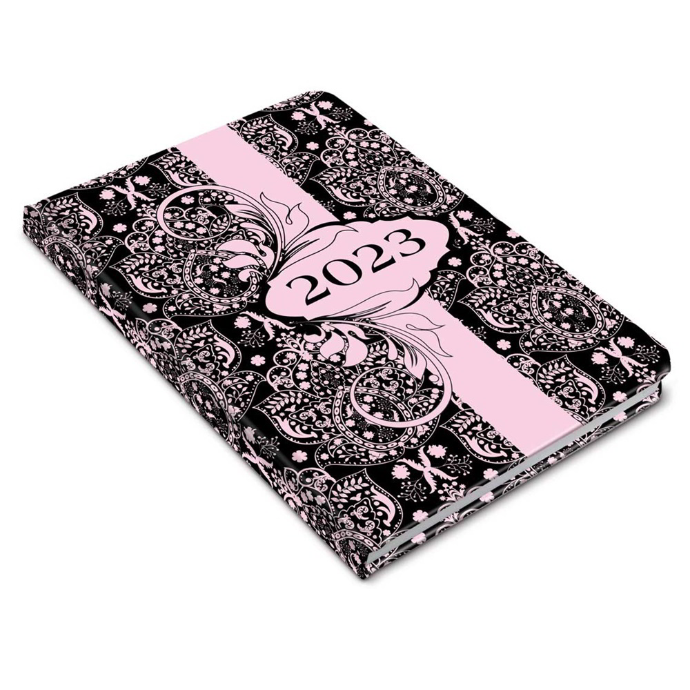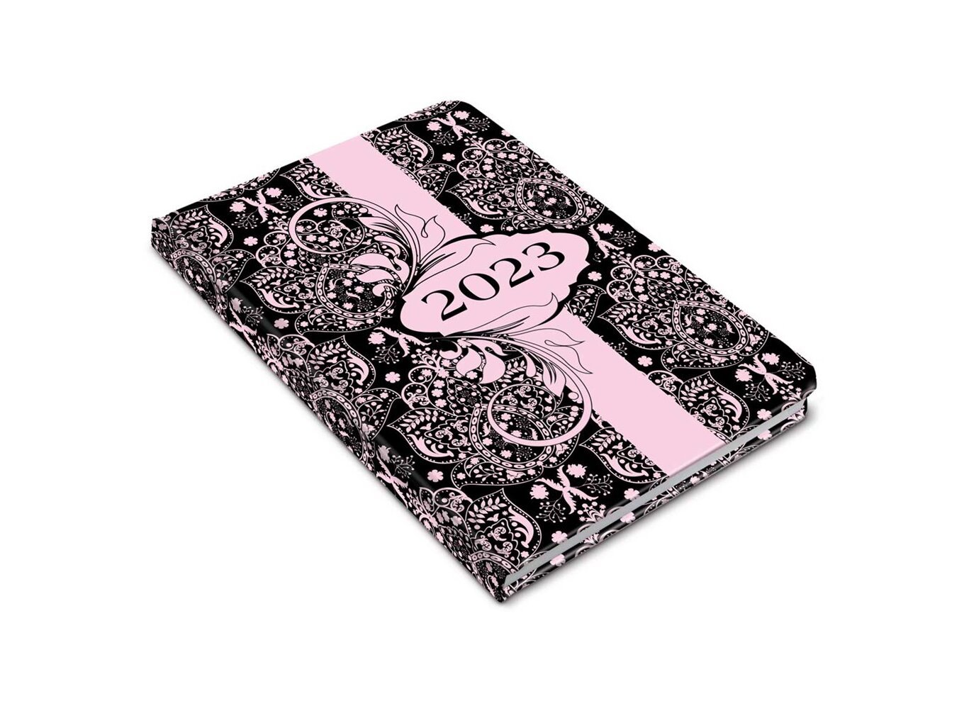 3D-lakkal felületnemesített, kemény táblával, lekerekített sarkokkal, és színes gumiszalaggal biztosított zsebnaptár.
