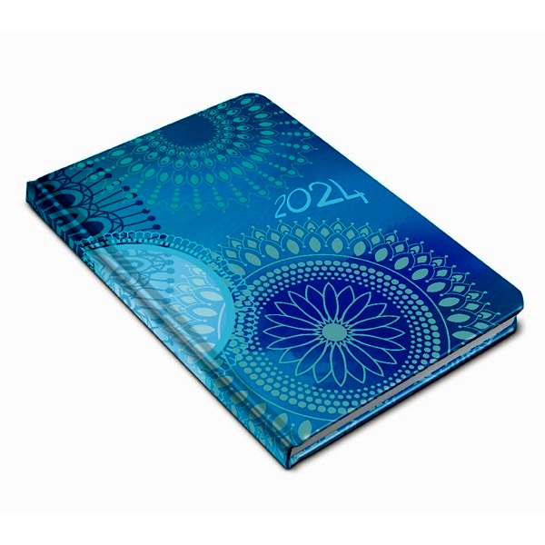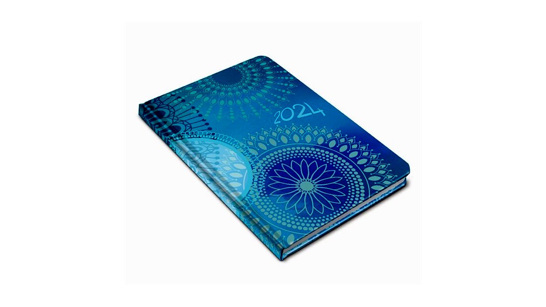 3D-lakkal felületnemesített, kemény táblával, lekerekített sarkokkal, és színes gumiszalaggal biztosított zsebnaptár.