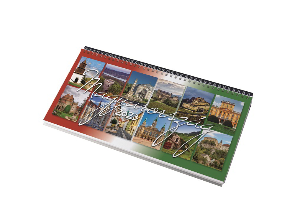 Ikerspirállal összefűzött, fehér lapos, fekvő asztali naptár