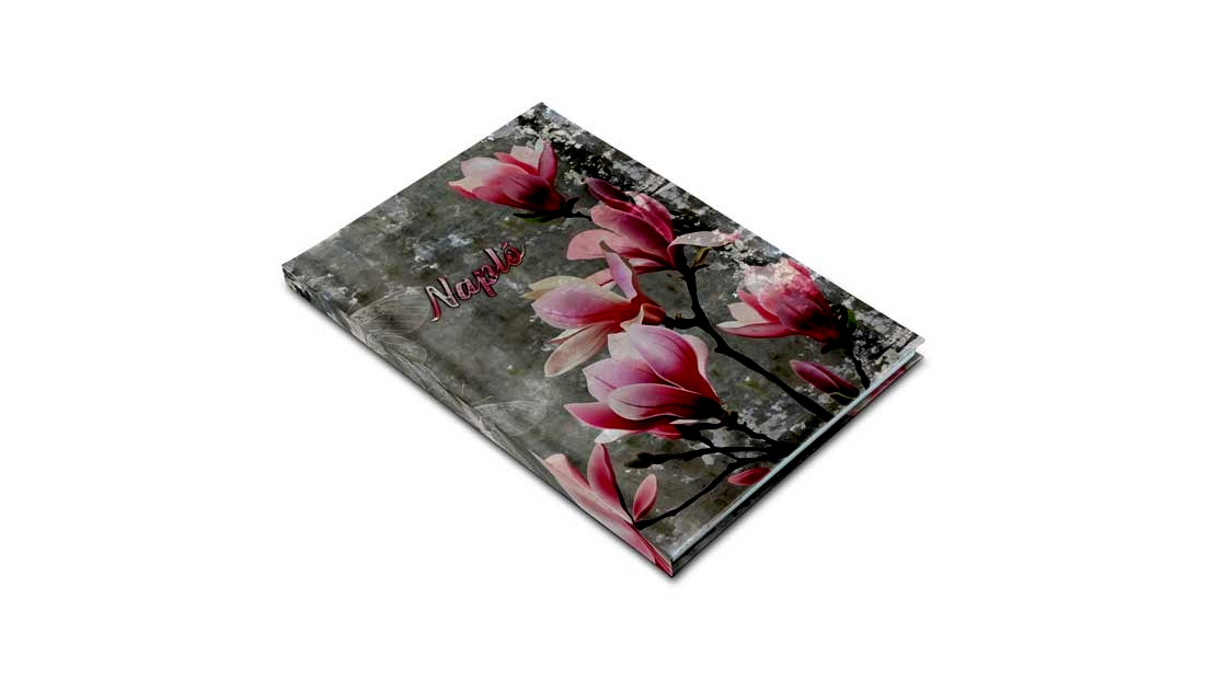 • Borítás: színes, soft-touch fóliázott papírborító, magnólia mintával