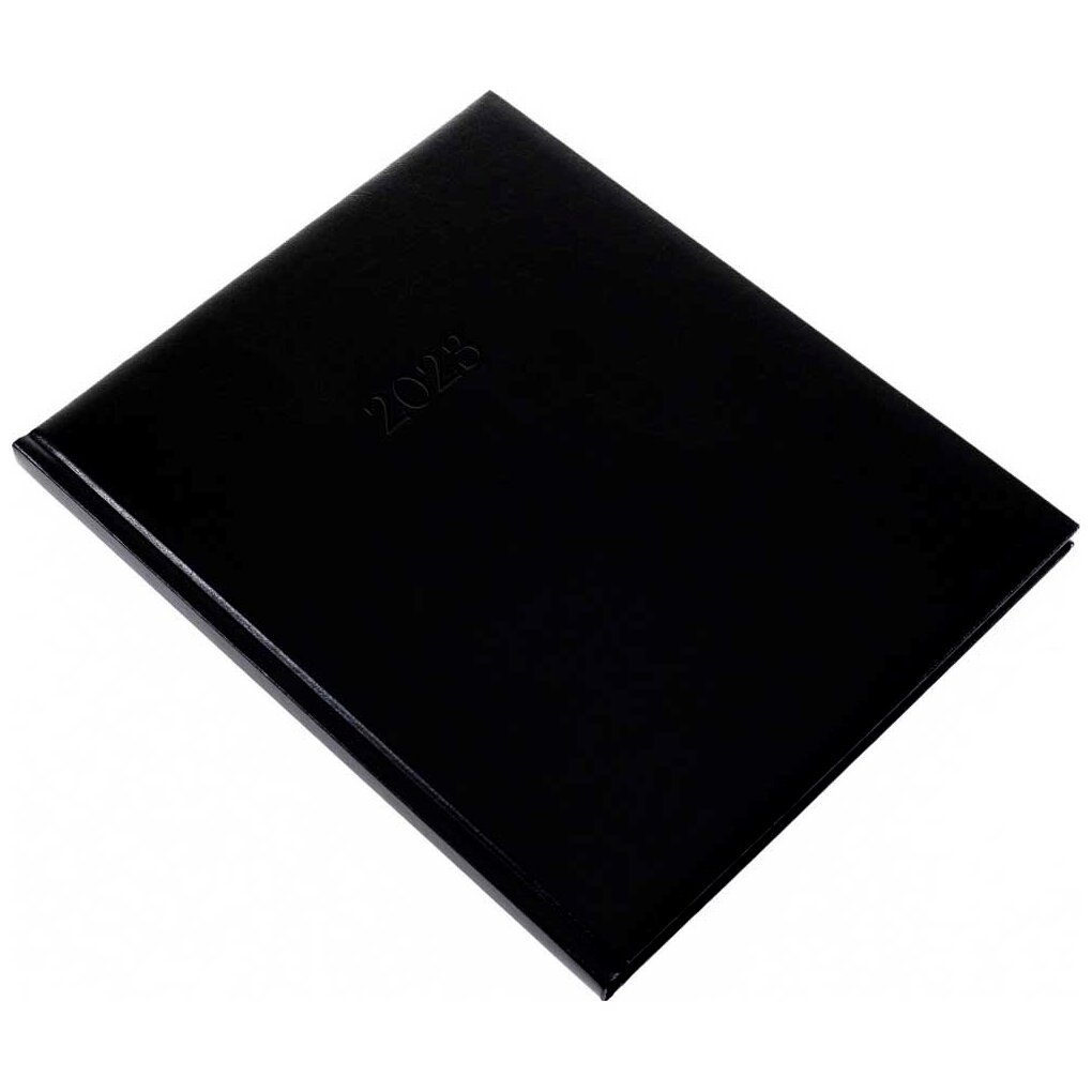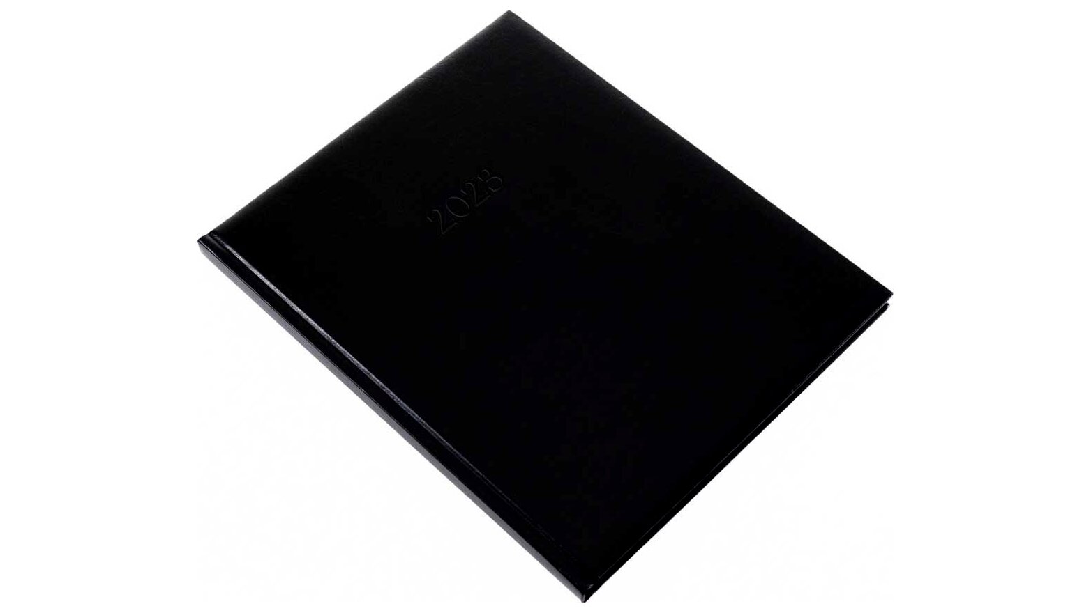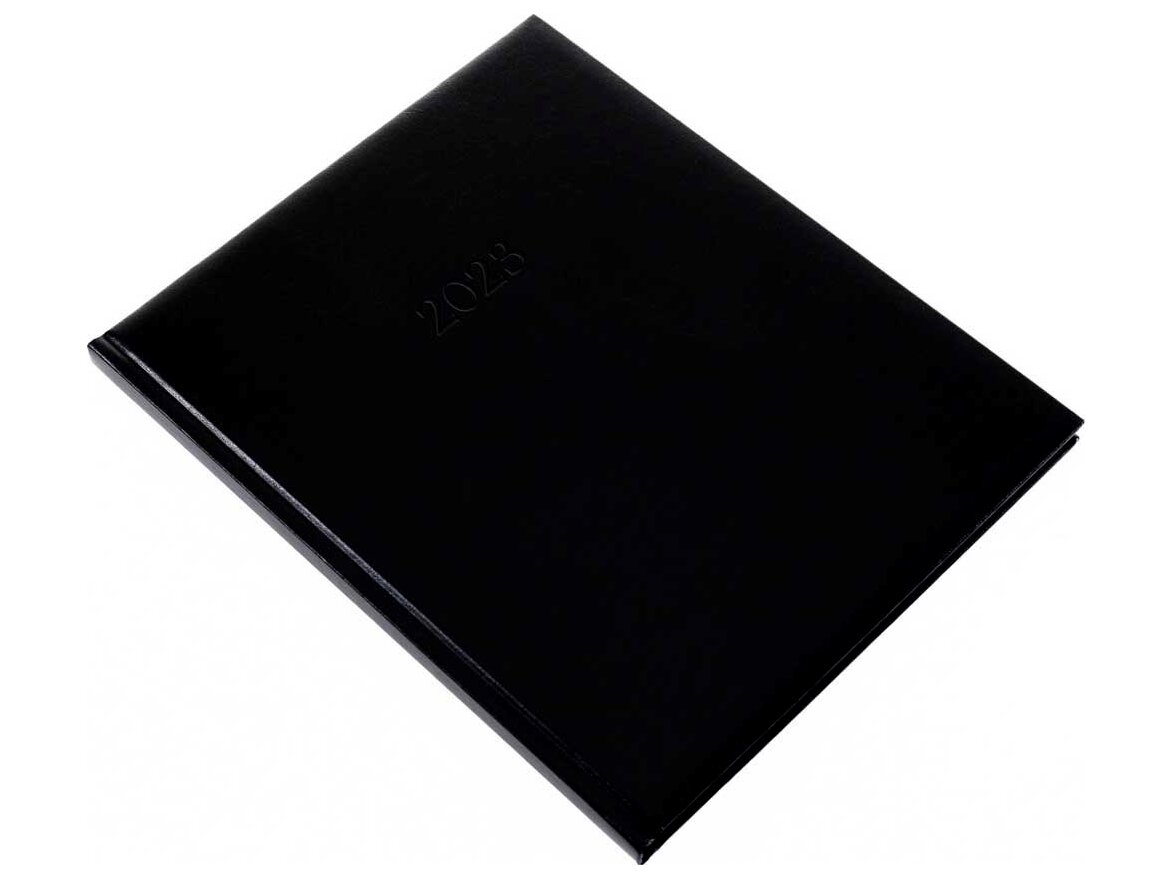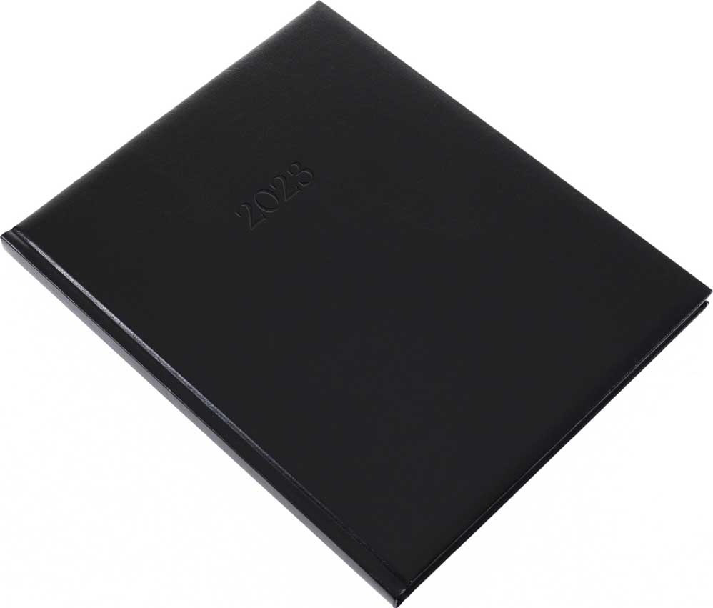 Fehér papíros, cérnafűzött, heti beosztású, 144 oldalas, sarokperforált, jelzőszalagot és térképet tartalmaz.