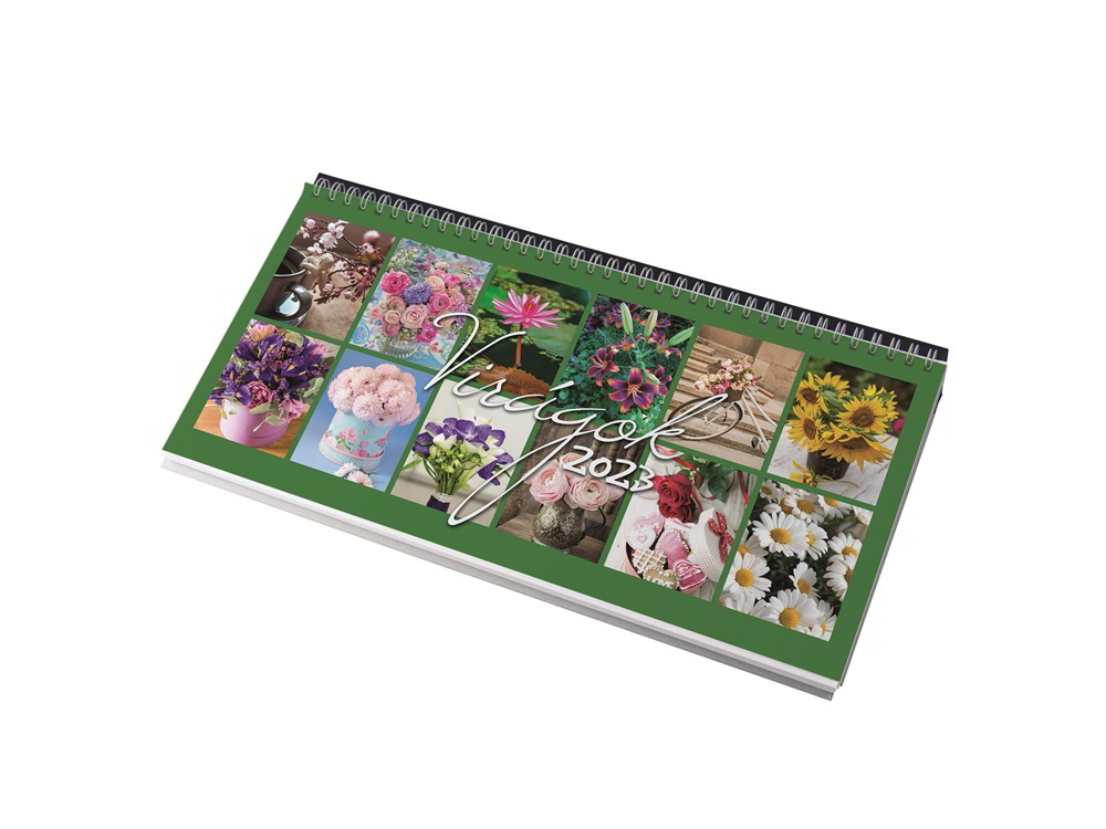 Ikerspirállal összefűzött, fehér lapos, fekvő asztali naptár