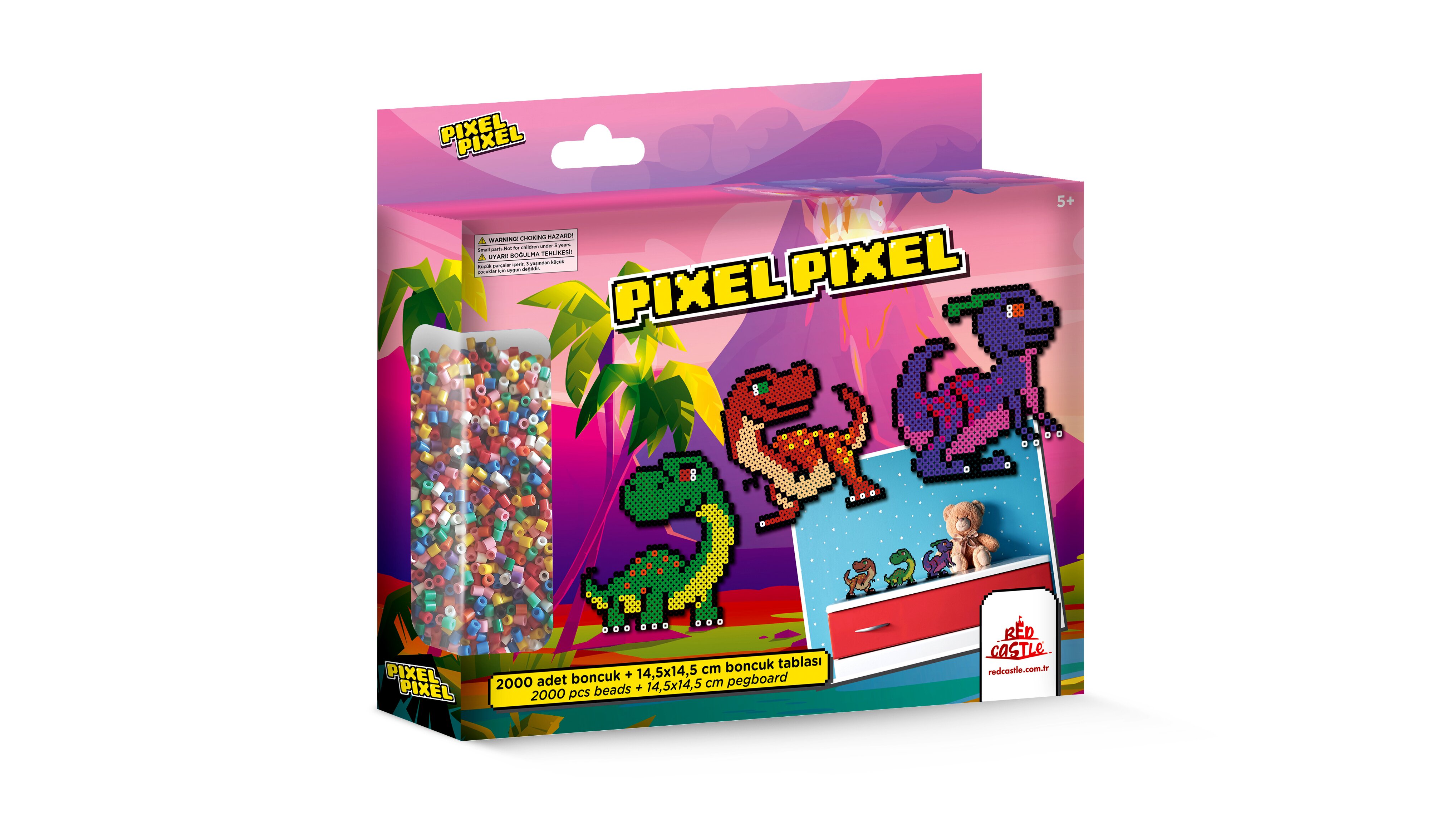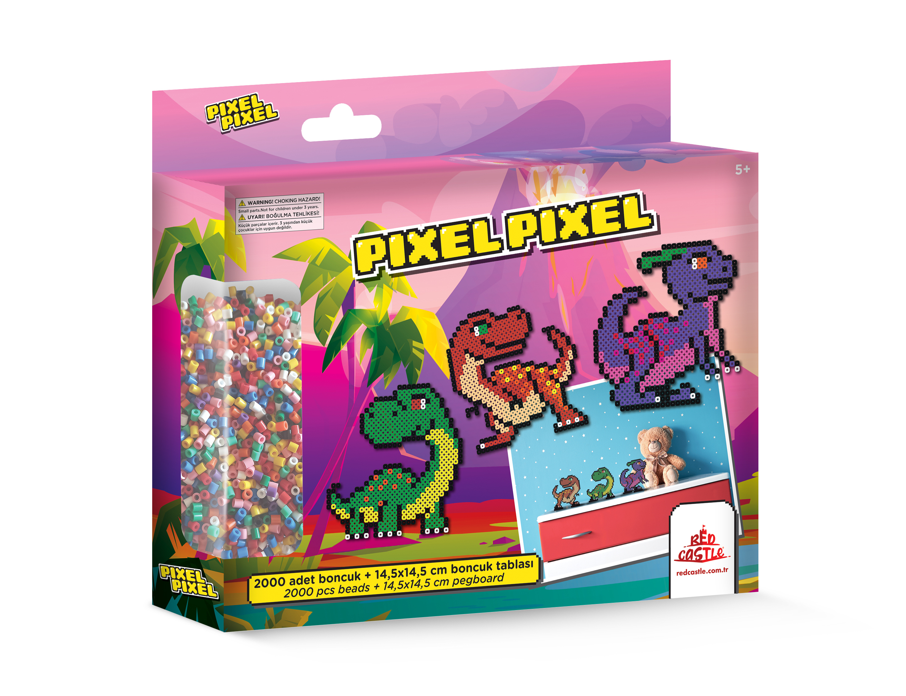 Ez a vasalható gyöngy készlet a dinoszauruszok világába varázsolja el a gyerekeket. A dobozban 2000 darab színes gyöngy található, amiből a gyerekek 3 darab 14,5 x 14,5 cm méretű, kétdimenziós gyöngyképet rakhatnak ki. A technika egyszerű: a tüskés alapok valamelyikére a kicsik elrendezik a megfelelő gyöngyöket, utána pedig felnőtt segítségével a mintára kell helyezni a vasalópapírt. A műanyag gyöngyök a hő hatására máris „összeragadnak". A vasalót nem károsítja a játék.