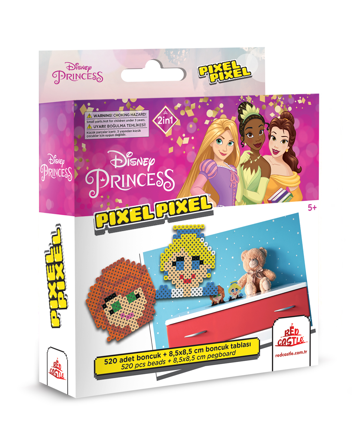 Ez a vasalható gyöngy készlet a Disney hercegnők világába varázsolja el a gyerekeket. A dobozban sok-sok színes gyöngy található, amiből a gyerekek 2 darab 8,5 x 8,5 cm méretű, kétdimenziós gyöngyképet rakhatnak ki.