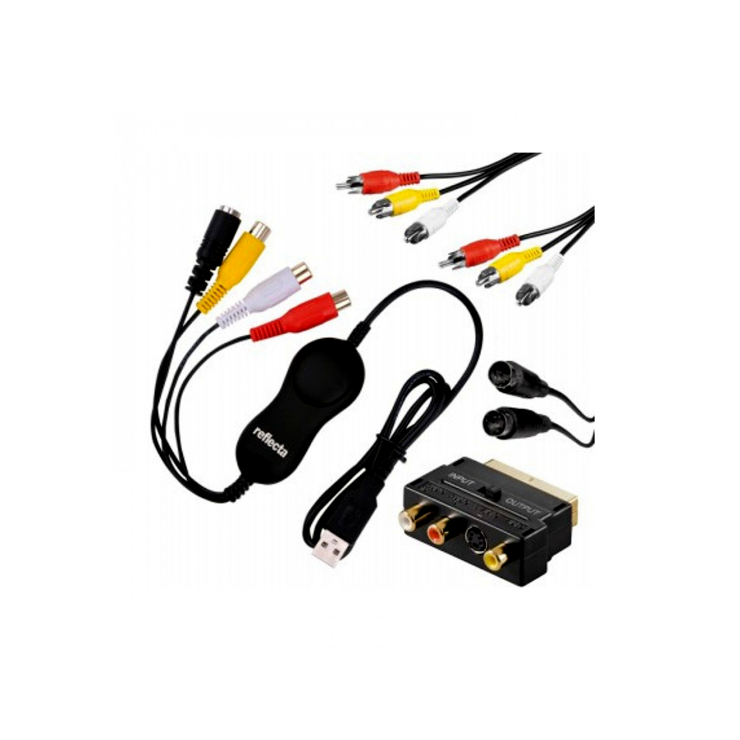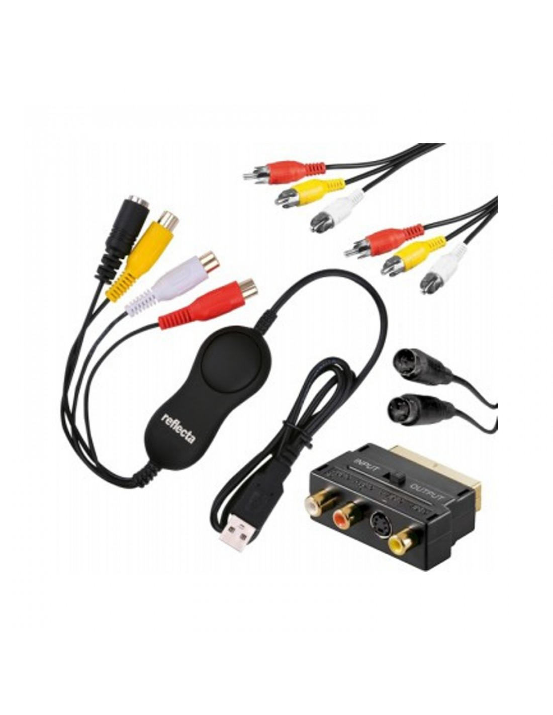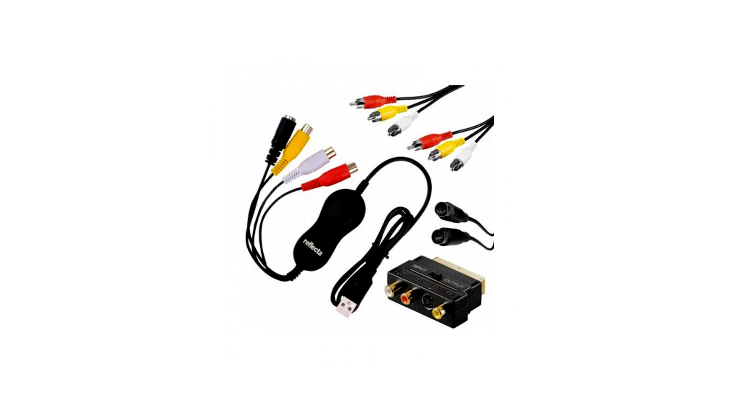 Az új reflecta VideoCapture Set USB-vel az Ön analóg videó-kincsei egy kézmozdulattal digitalizálhatók. A széleskörű tartalmú készlet lehetővé teszi a régi videofelvevők és kamkorderek problémamentes csatlakoztatását.. A videó grabber telepítéséhez nem szükséges meghajtók telepítése. Egyszerűen be kell dugni a számítógépe egy USB portjába, és a készülék automatikusan USB kameraként lesz felismerve. A bejövő videó- és audio jel most standard szoftverrel mint Windows-kamera vagy mint QuickTime a Mac-on fogadható. Speciálisan DVD szerkesztéséhez és égetéséhez alkalmas a mellékelt honestech videó vágóprogram VHS DVD-hez.