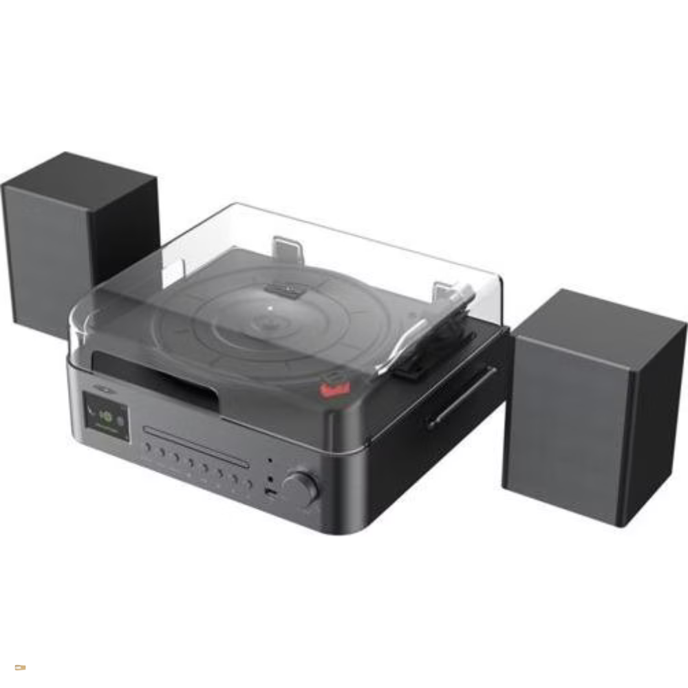 • 6 az 1-ben hangrendszer: lemezjátszó, CD lejátszó, DAB+ rádió, FM rádió, internetes rádió, Bluetooth-lejátszás