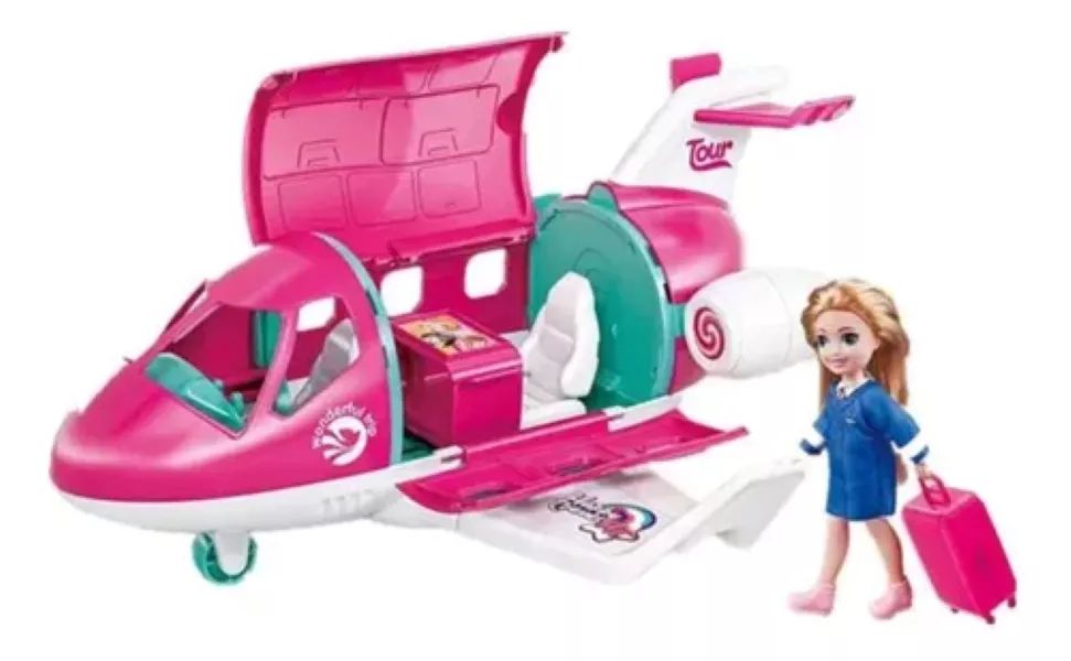 A gyerekek szórakoztató kalandokra indulhatnak ezzel a játékszettel, aminek csak képzeletük szabhat határt. A készlet egy babát és számos kiegészítőt tartalmaz, mindent, amire csak szükség lehet egy kényelmes utazáshoz. A repülőgép ajtaja kinyitható és a baba kényelmesen beültethető.