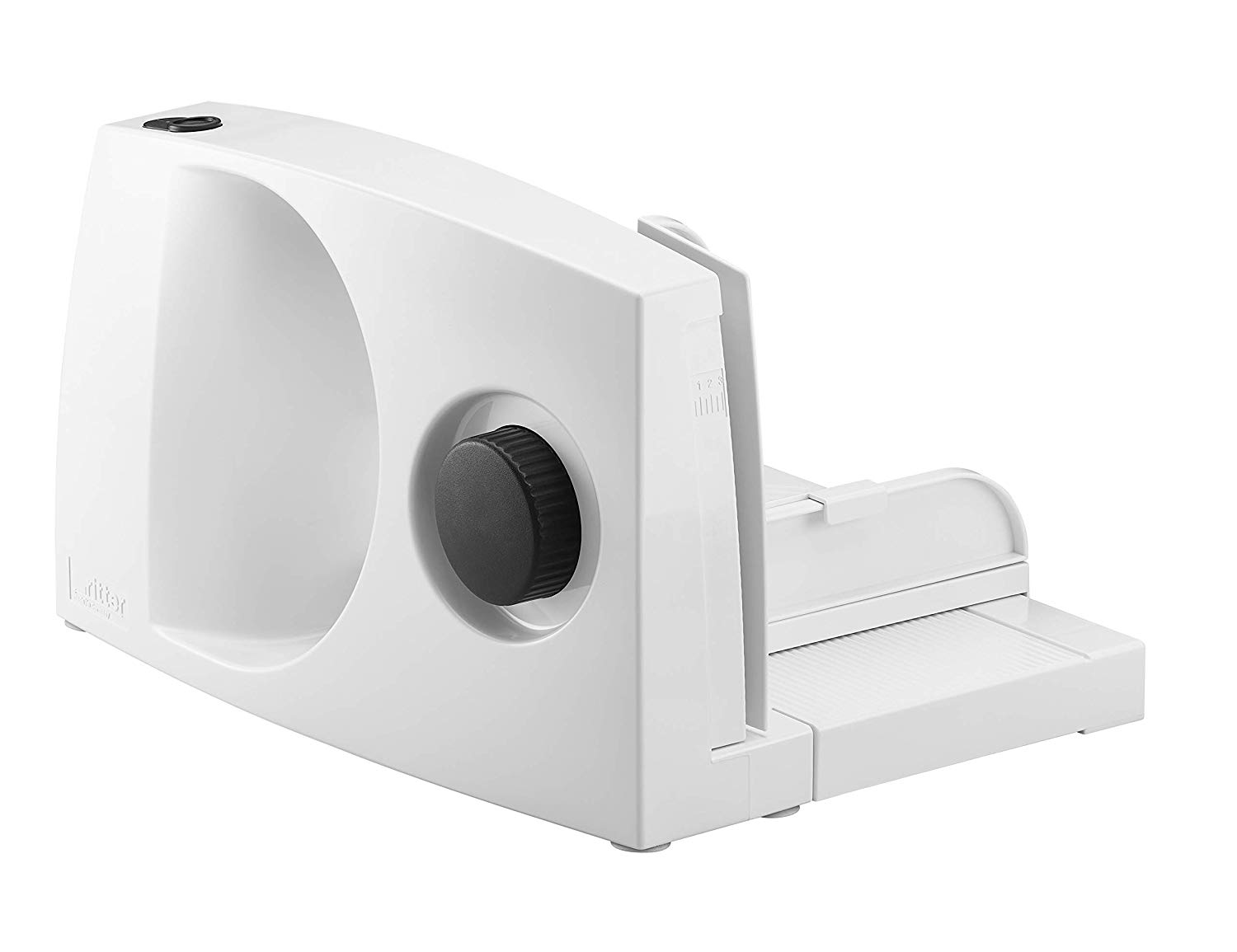 Az egyszerűen gondozható műanyagból készült 01-es összecsukható szeletelő egyszerű és biztonságos működést kínál. Csúszásmentesen áll a munkalapon. A vágási vastagság fokozatmentesen beállítható kb. 14 mm-ig.