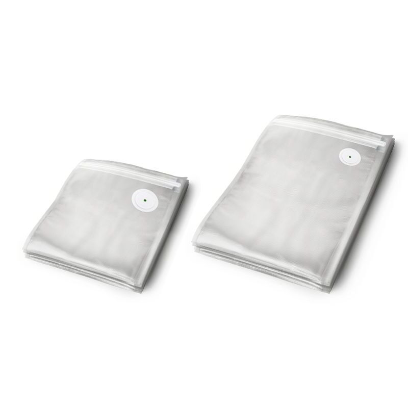 • 10 db vákuumtasak – 23 × 20 cm (kisebb adagokhoz, felvágottakhoz, sajtokhoz, gyümölcshöz, snackekhez)
