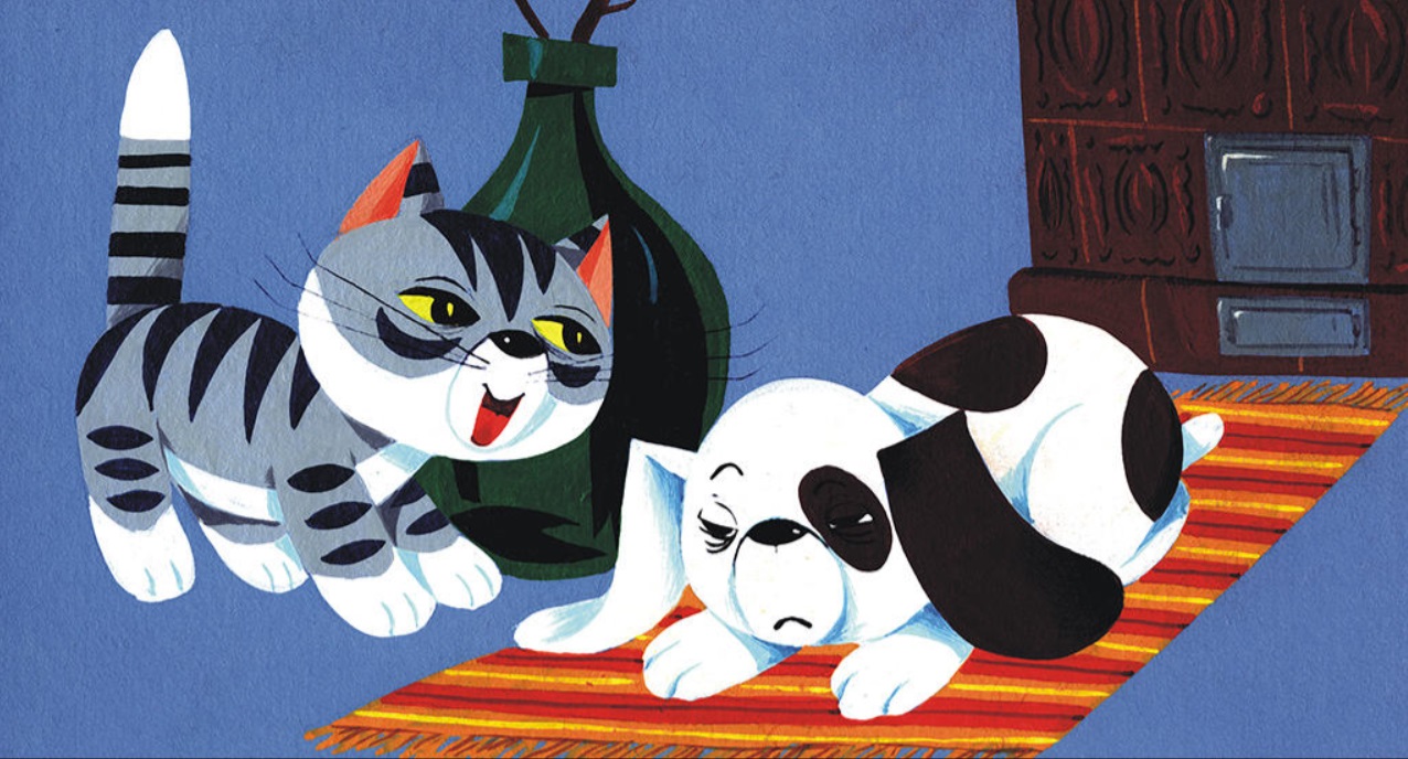 „– Hrr! Mi az? Ki az? – pattant talpra Benci az ismeretlen hangra, de nem látott senkit. Benézett a karosszék alá is. – Juj! – valaki meghúzta a farkincáját. Nagyot ugrott ijedtében, egyenesen az ablakpárkányra.”