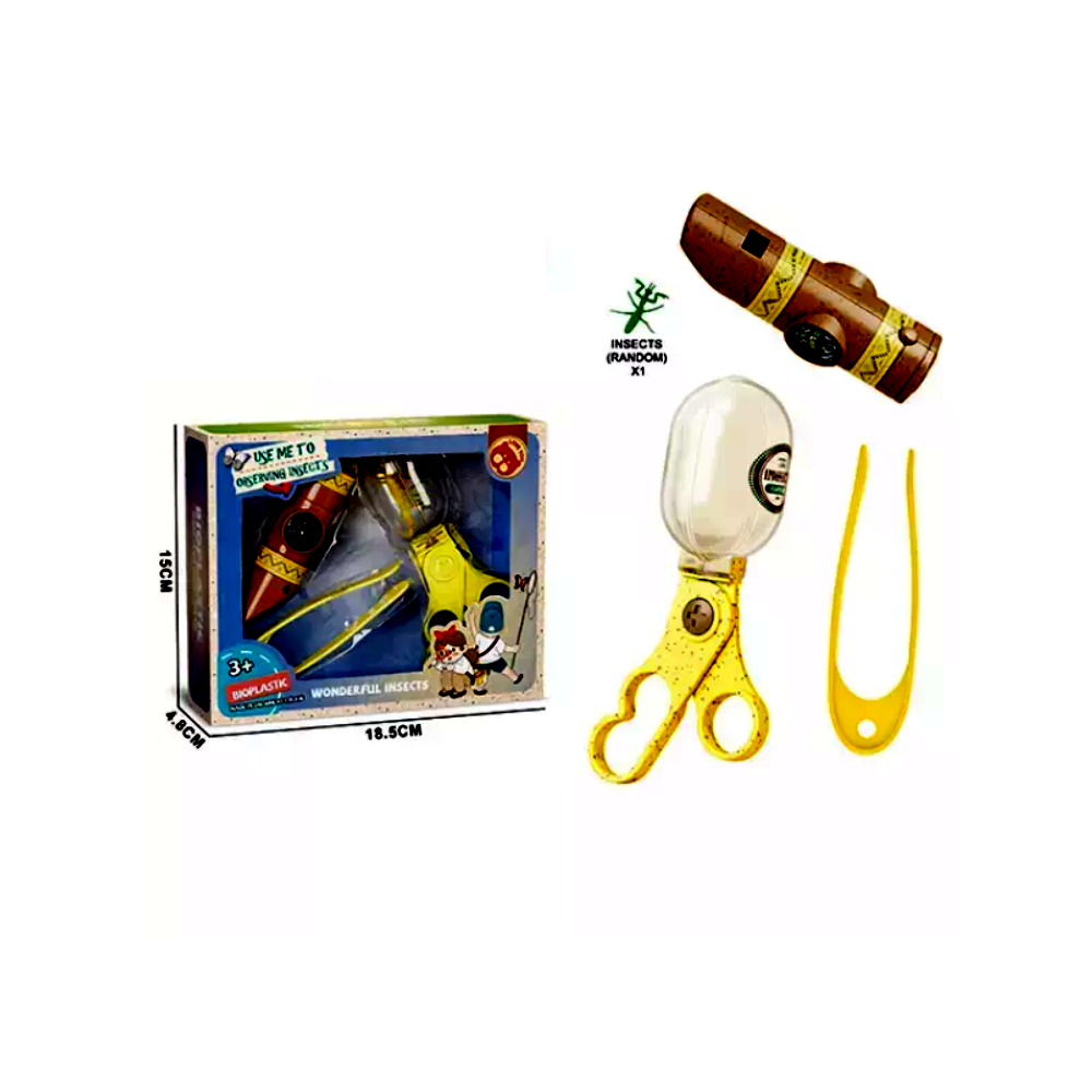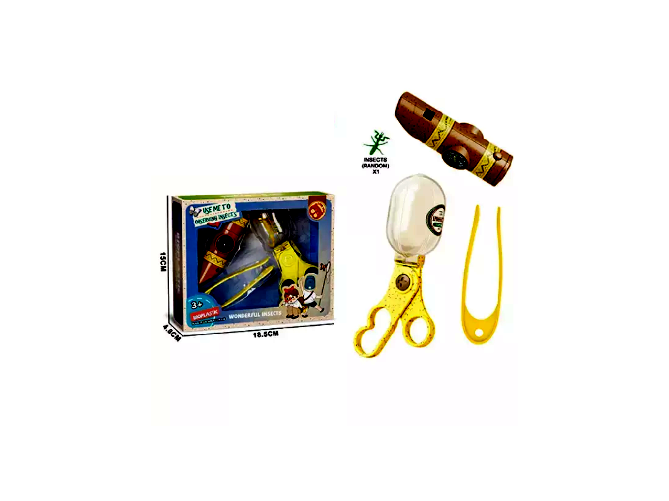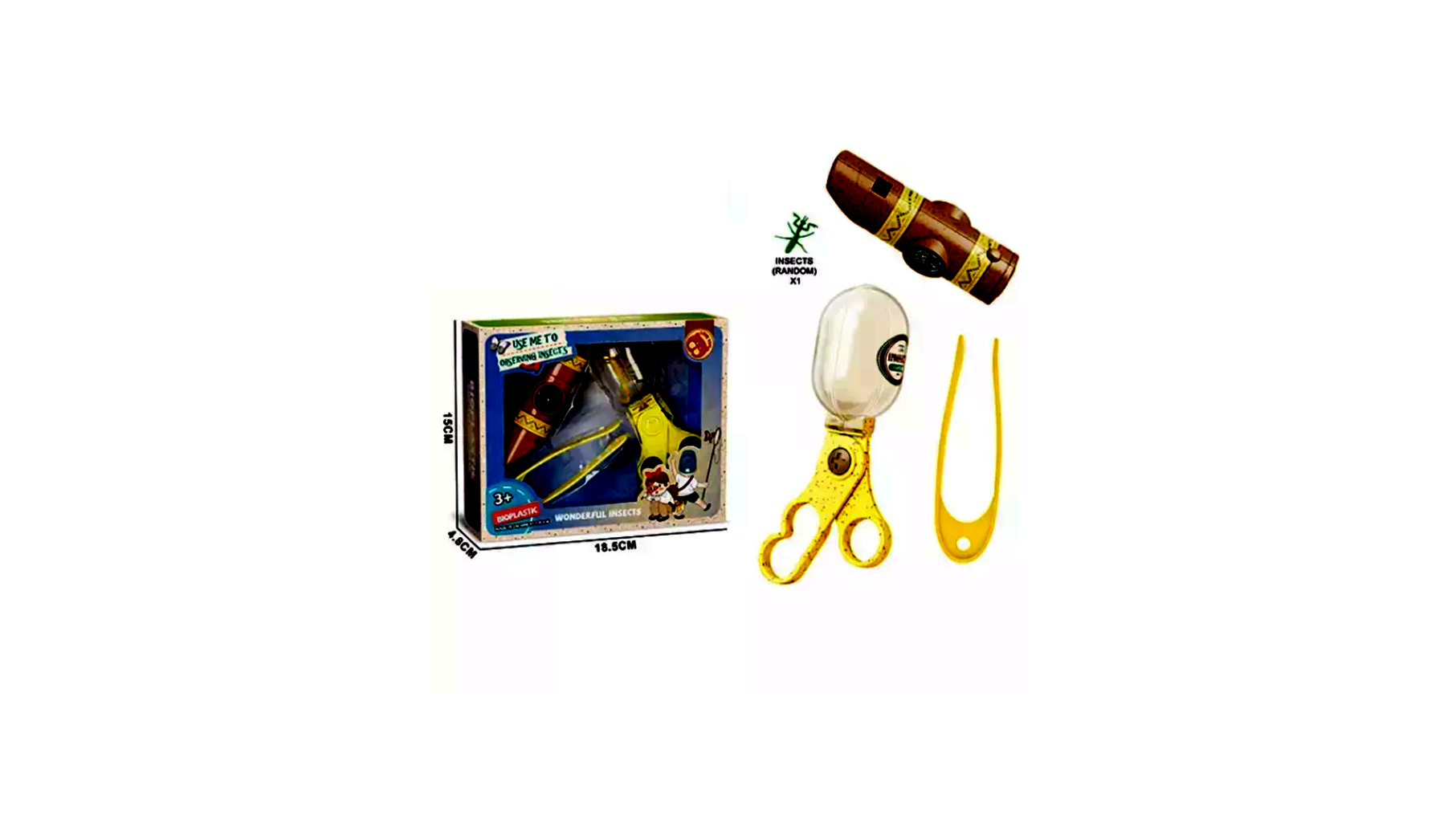 - Tartalmaz nagyítót és rovarfogó csipeszt: A nagyító segít a rovarok részleteinek felfedezésében, míg a csipesz biztonságos eszközt ad a rovarok megfogására.