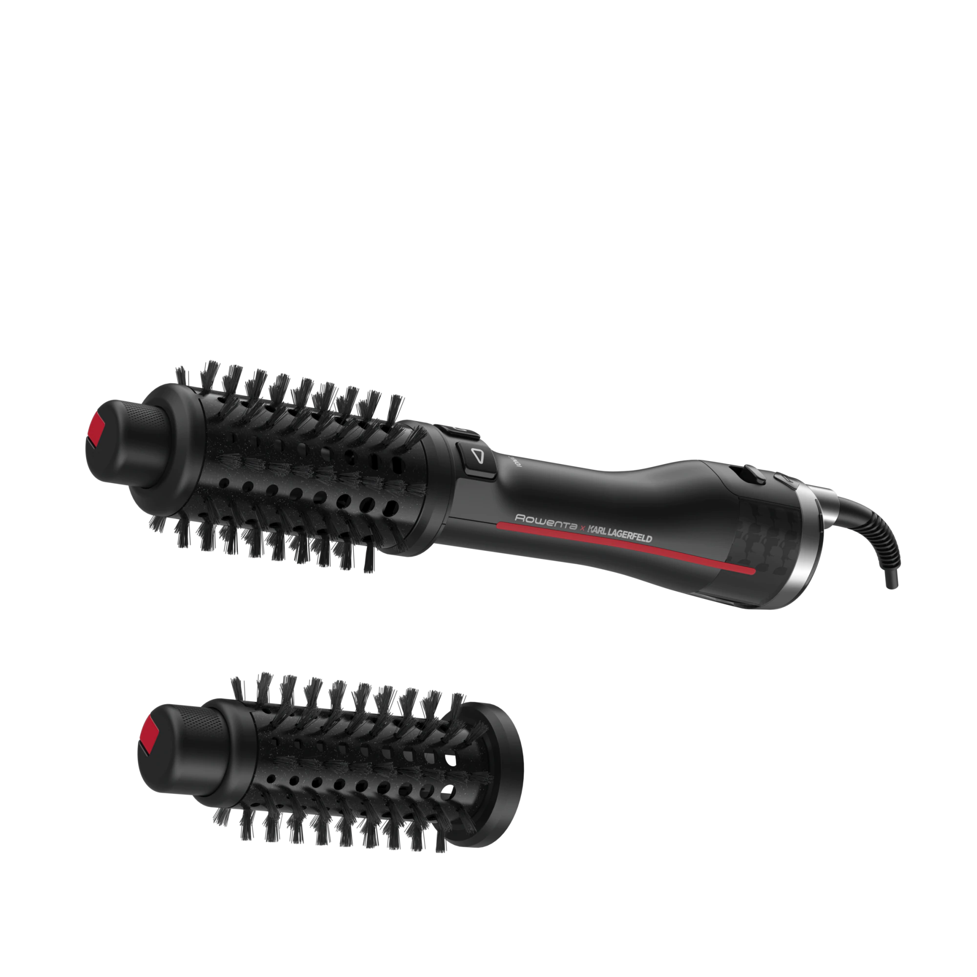 A Rowenta x KARL LAGERFELD K/Pro Stylist forgókefés légfúvásos hajformázó megkönnyíti a professzionális hajszárítási technika otthoni elsajátítását. A Pro Dual Motion technológia az automatikusan forgó kefével elvégzi a munkát Ön helyett, oly módon, hogy száradás közben kondicionálja és formázza a hajat, míg az ionizátor a Keratin & Glow felülettel együtt ragyogó fényt kölcsönöz a hajnak. A minden hajhosszhoz megfelelő két kefével nap mint nap olyan elegáns, sima frizurákat készíthet, vagy rugalmas hullámokat érhet el, mintha egy fodrász készítette volna - mindezt az ergonomikus kialakítású, divatos dizájnnak köszönhetően.