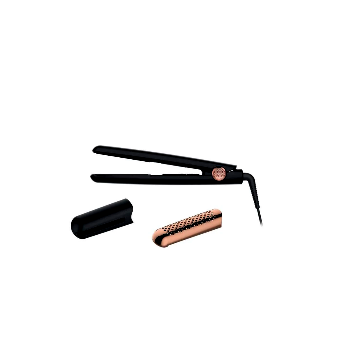 A speciális felület megakadályozza a túlmelegedést és megőrzi a haj természetes keratin tartalmát, biztosítva a haj fényességét és simaságát. A kombinált kefe és hajvasaló segítségével elkerülheti a haj húzódását vagy károsodását.