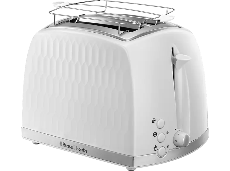Kölcsönözzön divatos stílust konyhájának a Honeycomb 2 szeletes prémium fehér dombornyomott kivitelű kenyérpirítójával. Felfrissíti konyhája megjelenését, ugyanakkor számtalan kényelmi funkcióval rendelkezik, és a pénztárcáját sem terheli meg. Extra kiemelő funkciója megkönnyíti a kezelést, a zsemlemelegítő rács pedig a reggelek kedvelt kiegészítője.
