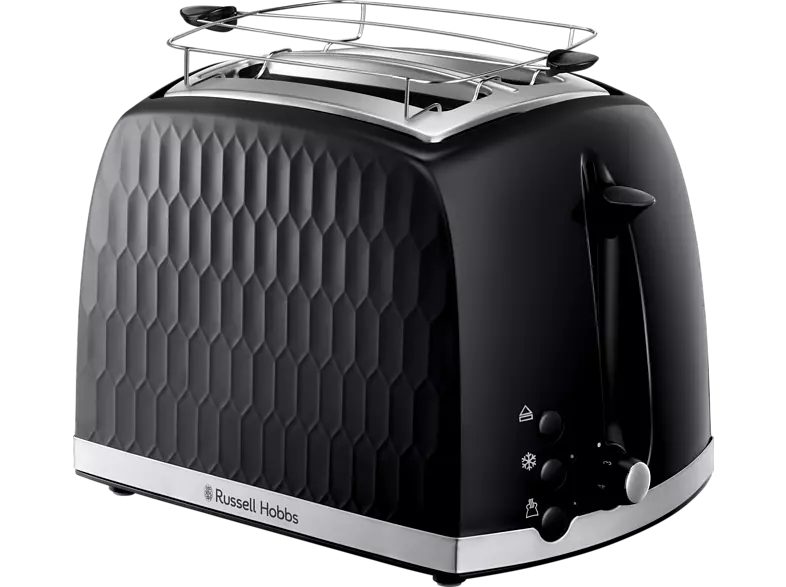 Texturált designA Honeycomb két szeletes kenyérpirító stílusos külsőt kölcsönöz konyhapultjának. Texturált fehér műanyagból készült jellegzetes hatszögletű, a méhkaptár lépére emlékeztető mintázata és rozsdamentes acél díszítései otthona divatos kiegészítőjévé teszik.
