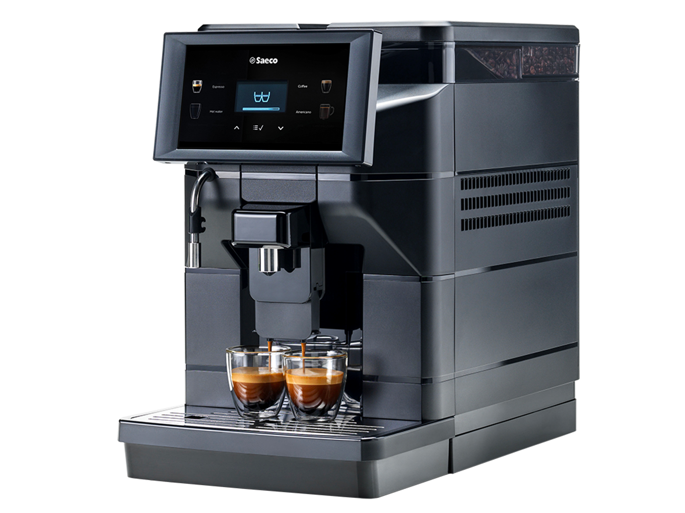 • Programozható kávéhosszúságok: minden ital mennyisége egyénileg beállítható és elmenthető, így a rövid eszpresszótól a hosszabb kávéig minden igényt lefed.
